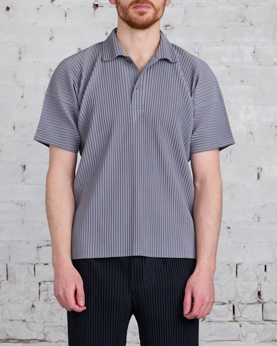 미야케 의류쿠 플리츠 남성 플리츠 폴로 셔츠 반팔 여름 라펠 버튼 사이드 포크 티셔츠 탑 JM193스토어 가기