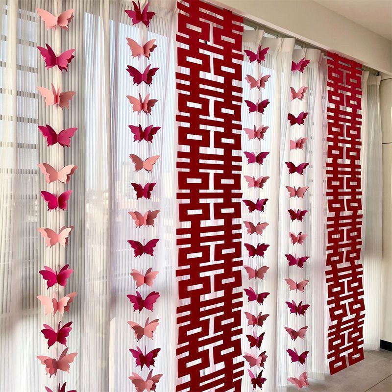• 2m 로즈 레드 길어진 연속 행복 2개 + 그라데이션 나비 4개