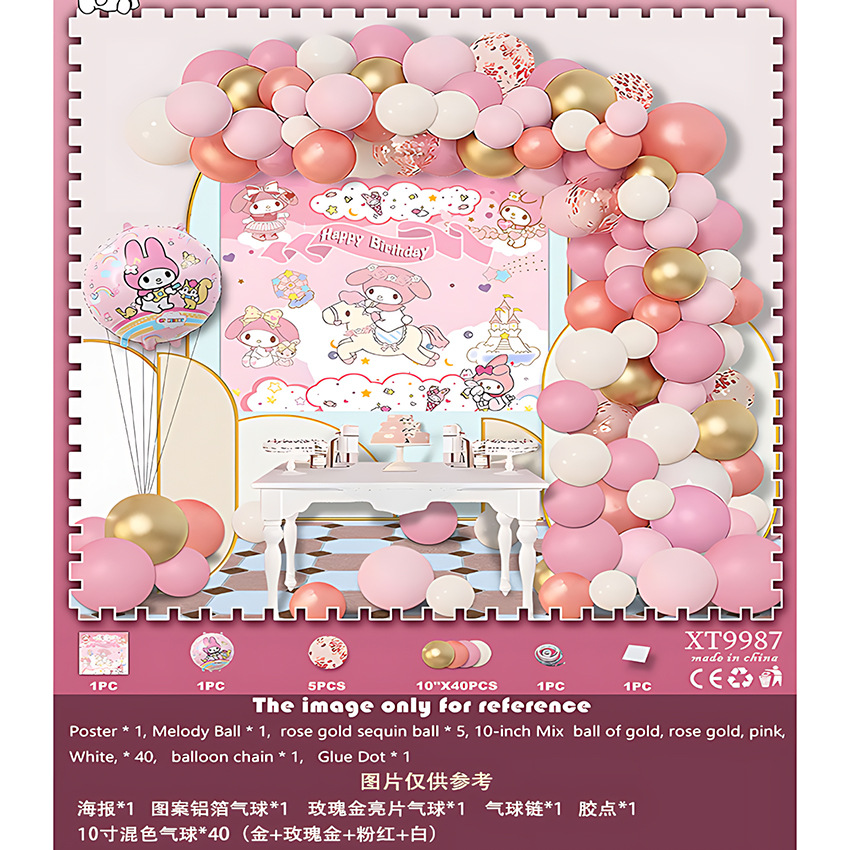 쿠로미 멜로디 생일 풍선 세트 인형 시리즈 어린이 생일 파티 배경 장식