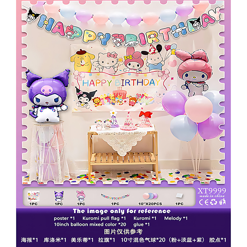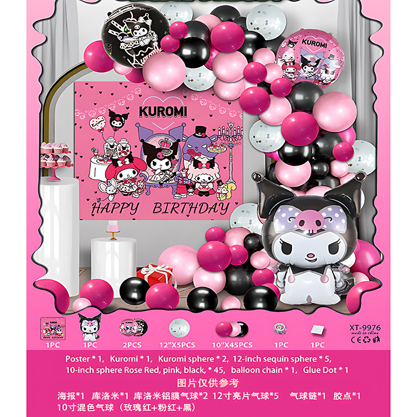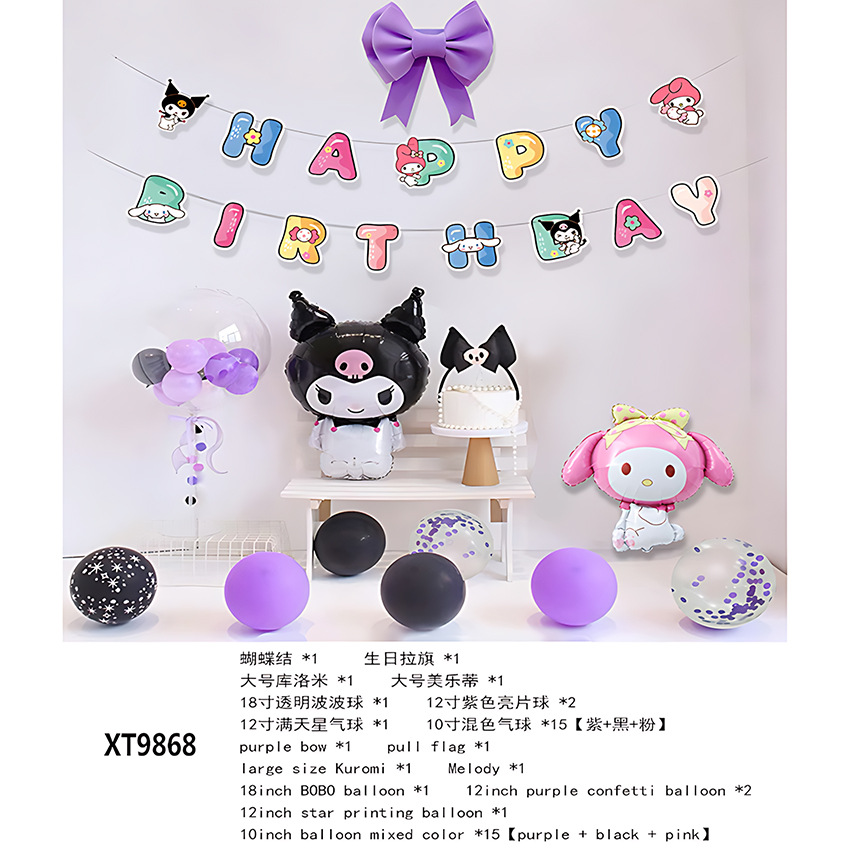 쿠로미 멜로디 생일 풍선 세트 인형 시리즈 어린이 생일 파티 배경 장식스토어 가기