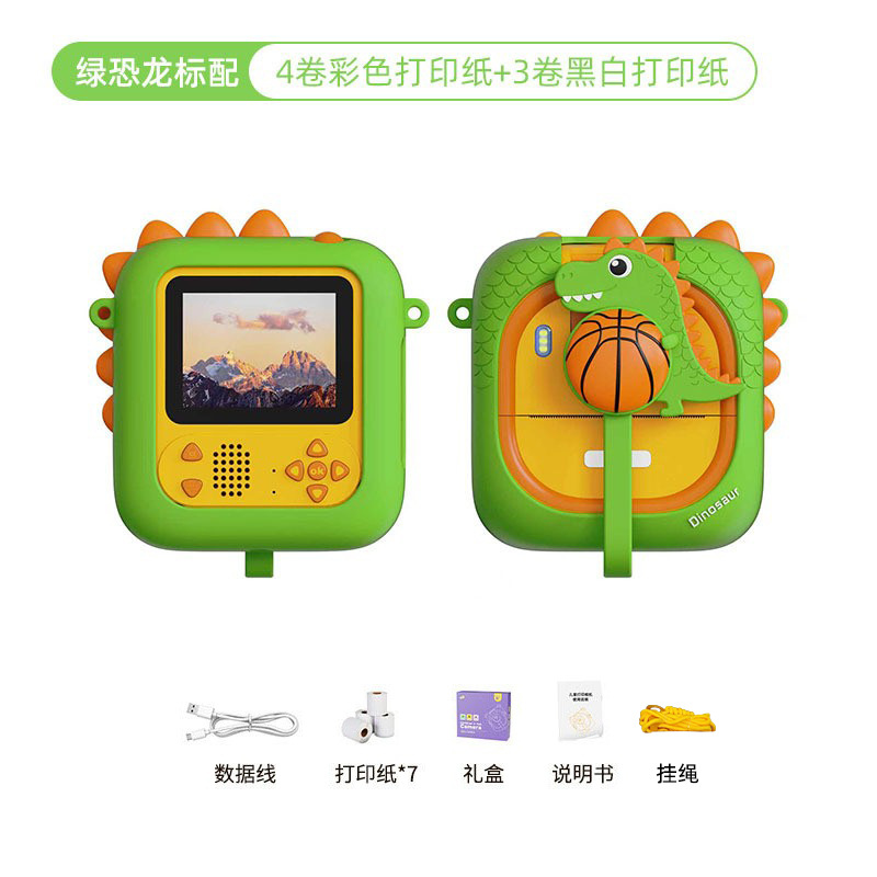 • 녹색 공룡 폴라로이드 [기본 구성: 컬러 인화지 4롤 + 흑백 인화지 3롤 + 목걸이 줄]