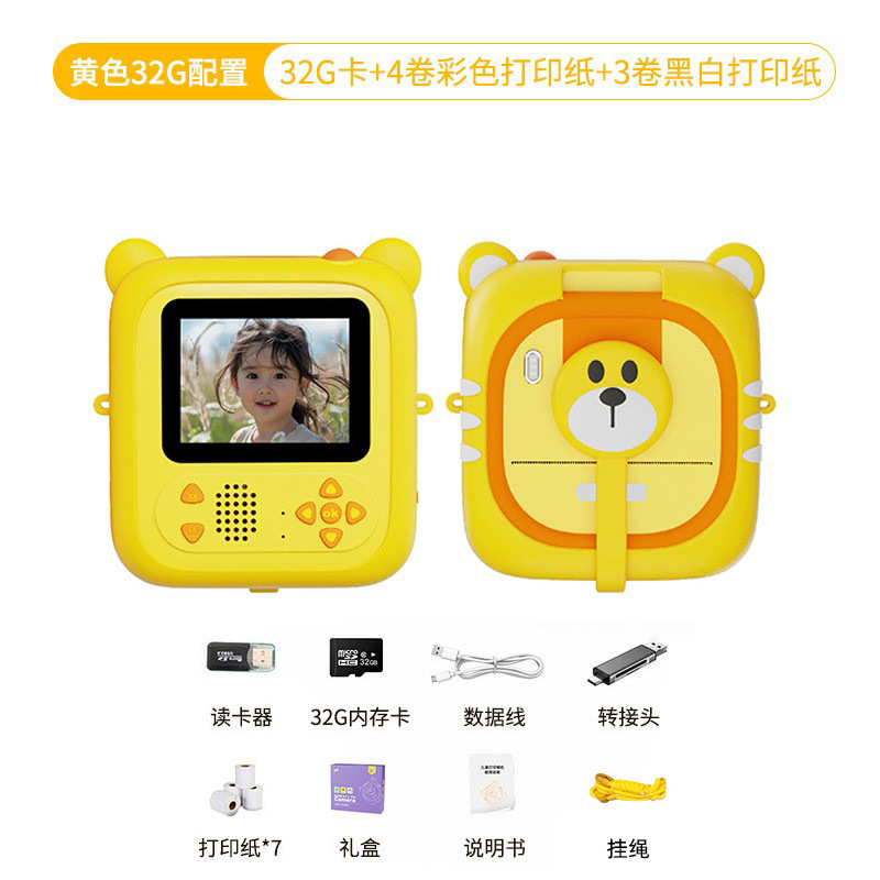 • 노란색 폴라로이드 [32G 카드 + 컬러 인쇄 용지 4롤 + 흑백 용지 3롤 + 끈 + 카드 리더기 + 어댑터]
