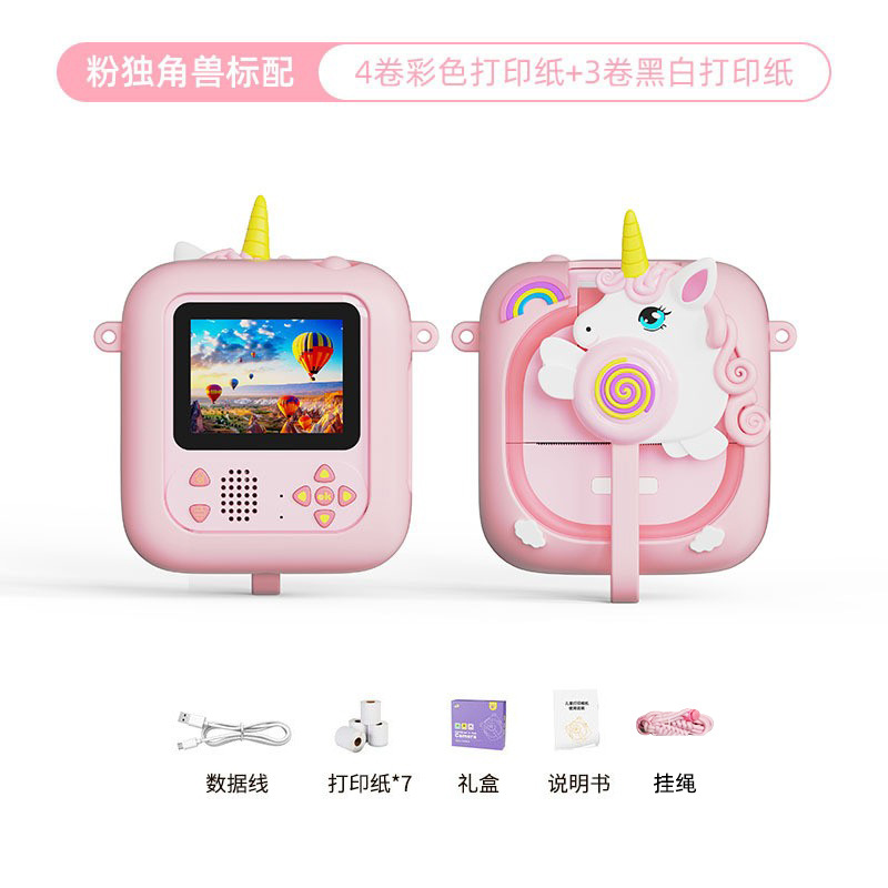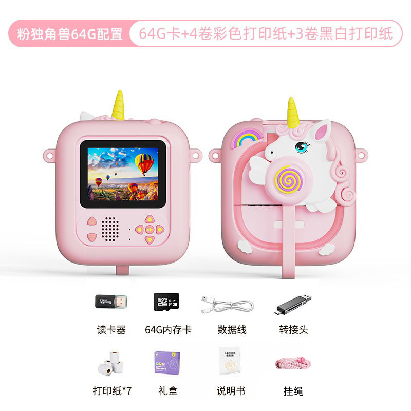 • 핑크 유니콘 폴라로이드 [64G 카드 + 컬러 인화지 4롤 + 흑백 인화지 3롤 + 목걸이 줄 + 카드 리더기 + 변환 어댑터]