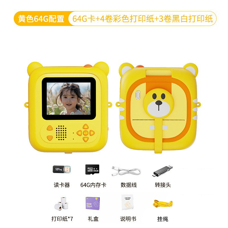 • 노란색 폴라로이드 [64G 카드 + 컬러 인쇄 용지 4롤 + 흑백 용지 3롤 + 끈 + 카드 리더기 + 어댑터]