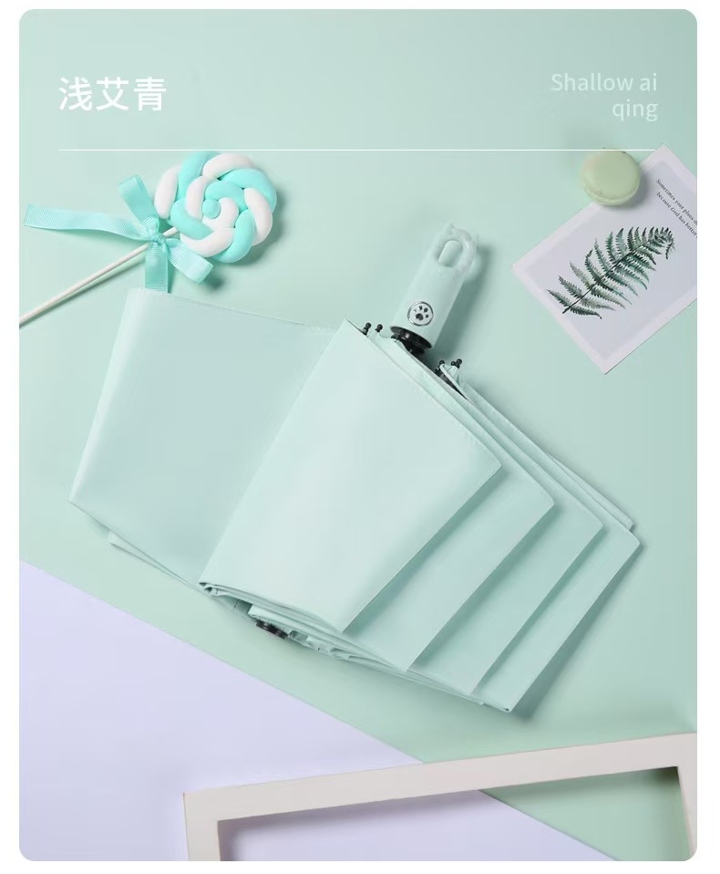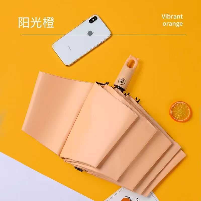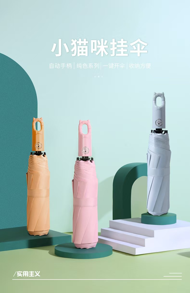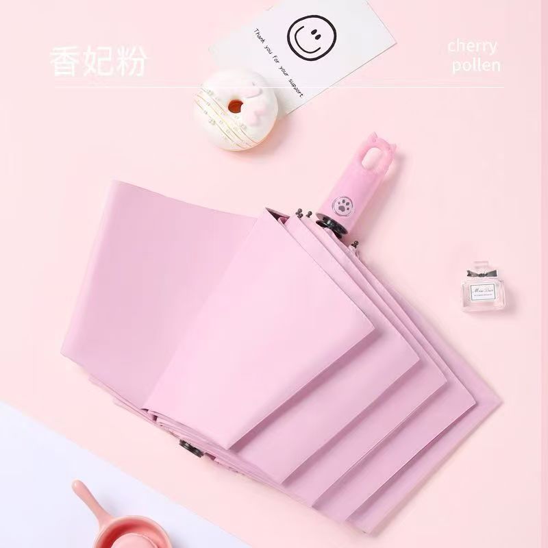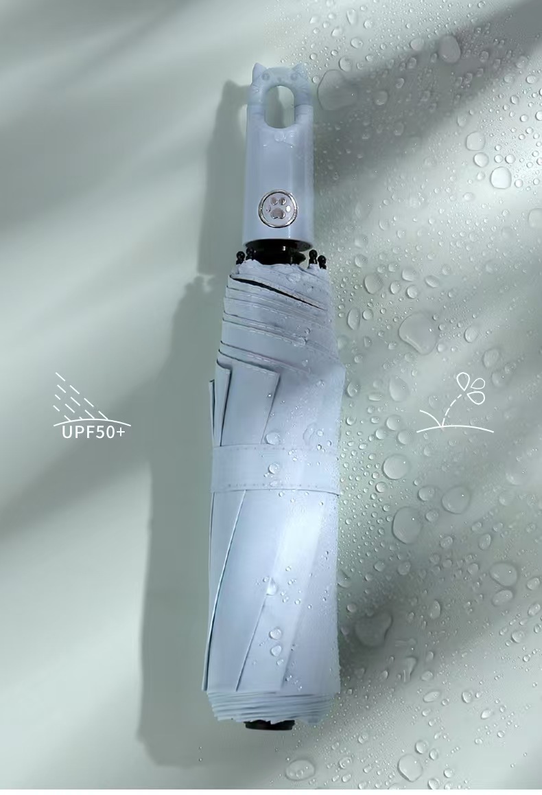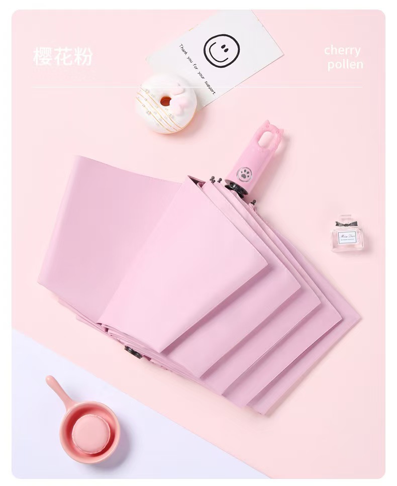 여학생을위한 완전 자동 새끼 고양이 매달려 우산 양산을위한 이중 용도 자외선 차단 접이식 태양 우산