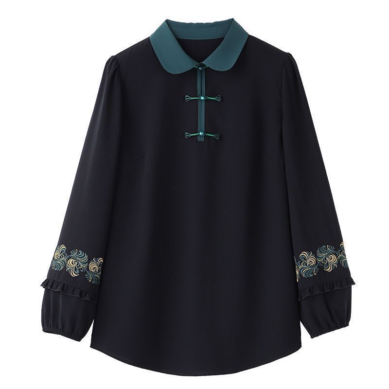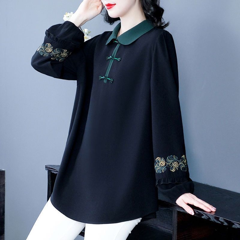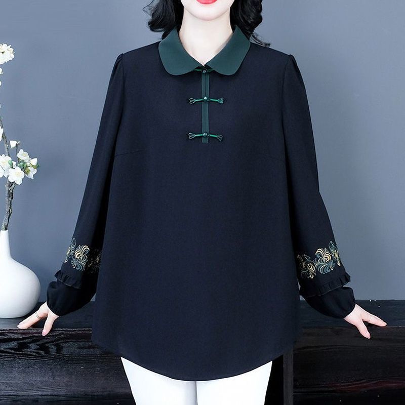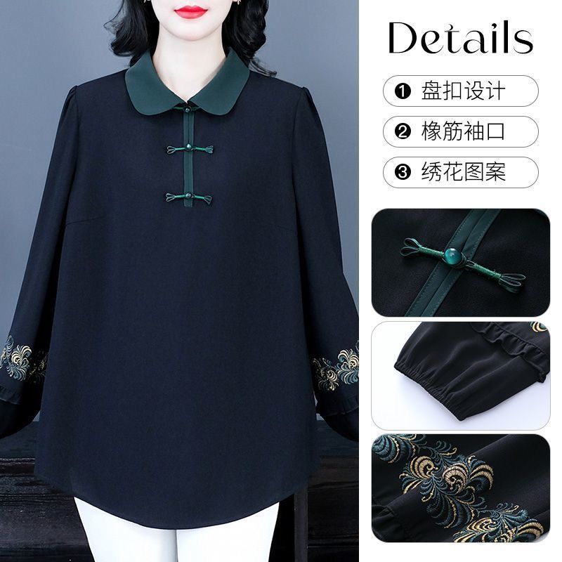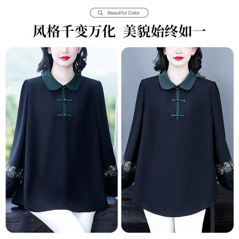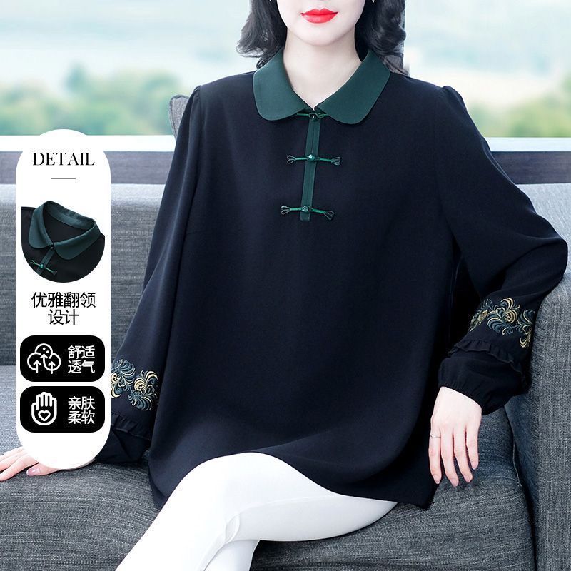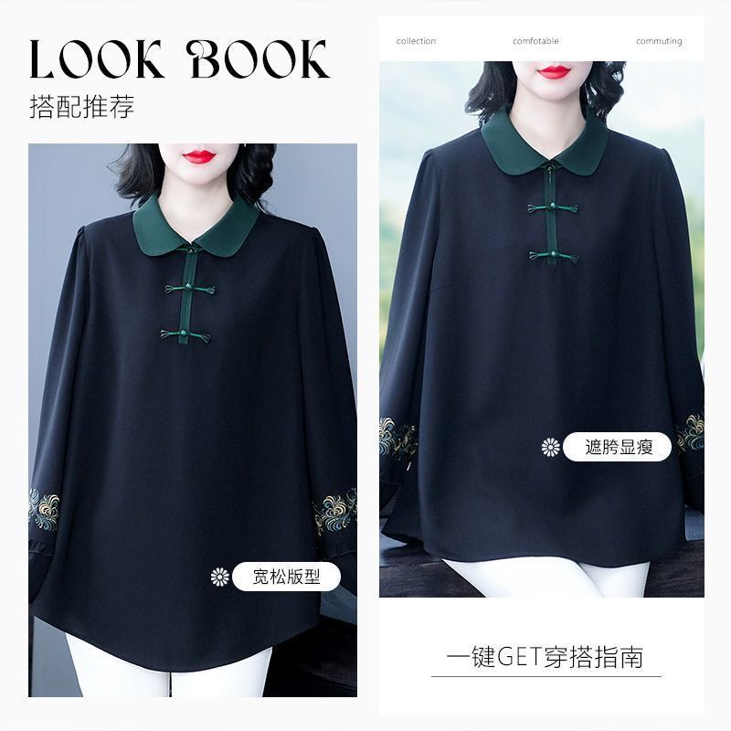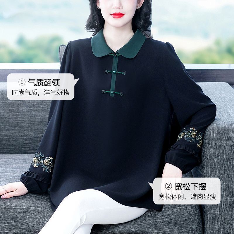 새로운 중국 자수 최고 중년 어머니 느슨한 플러스 사이즈 여성의 2025 봄 새로운 여성의 고급 작은 셔츠스토어 가기