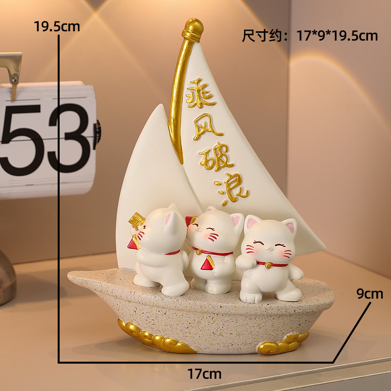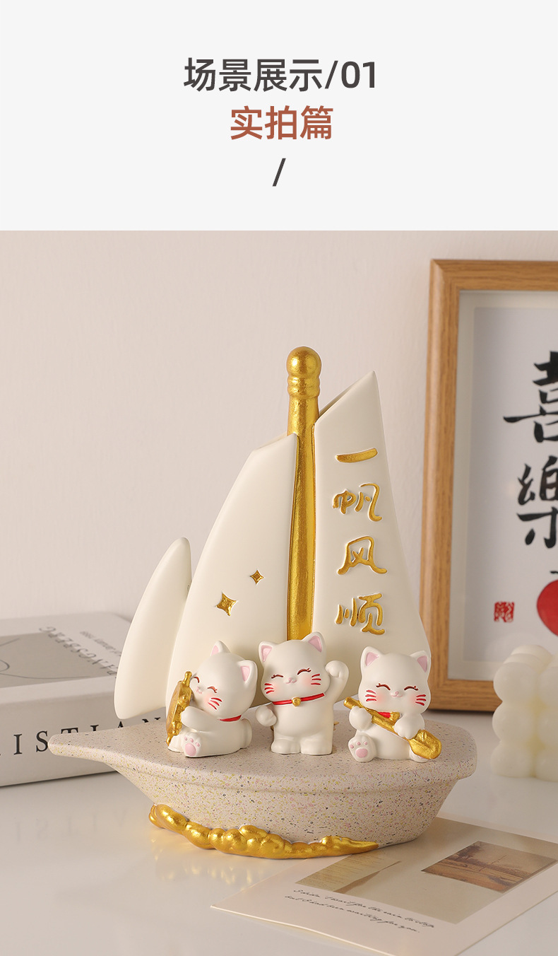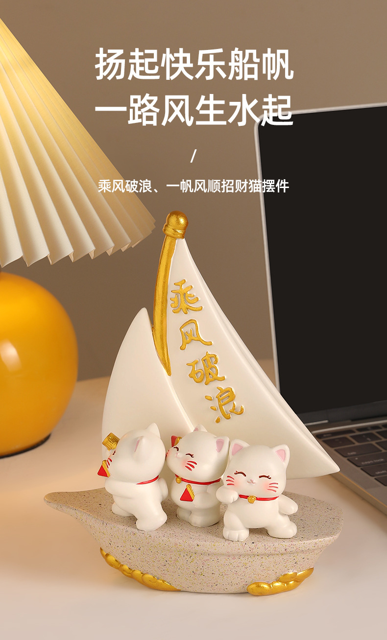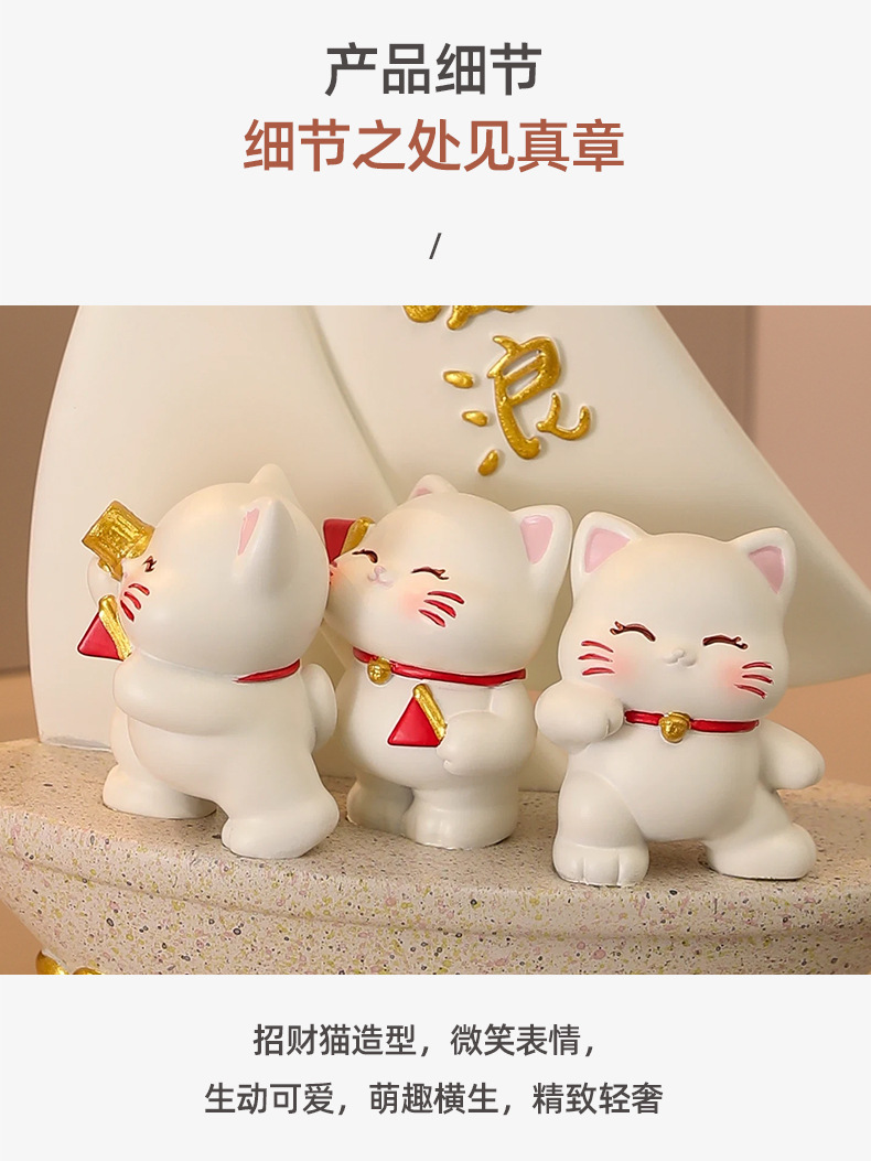 蛇年新款招财猫一帆风顺入户玄关树脂摆件 可爱卡通桌面装饰礼品