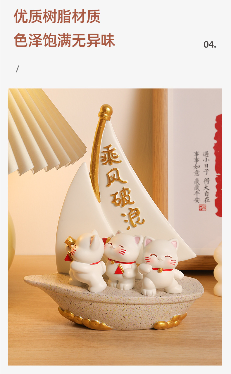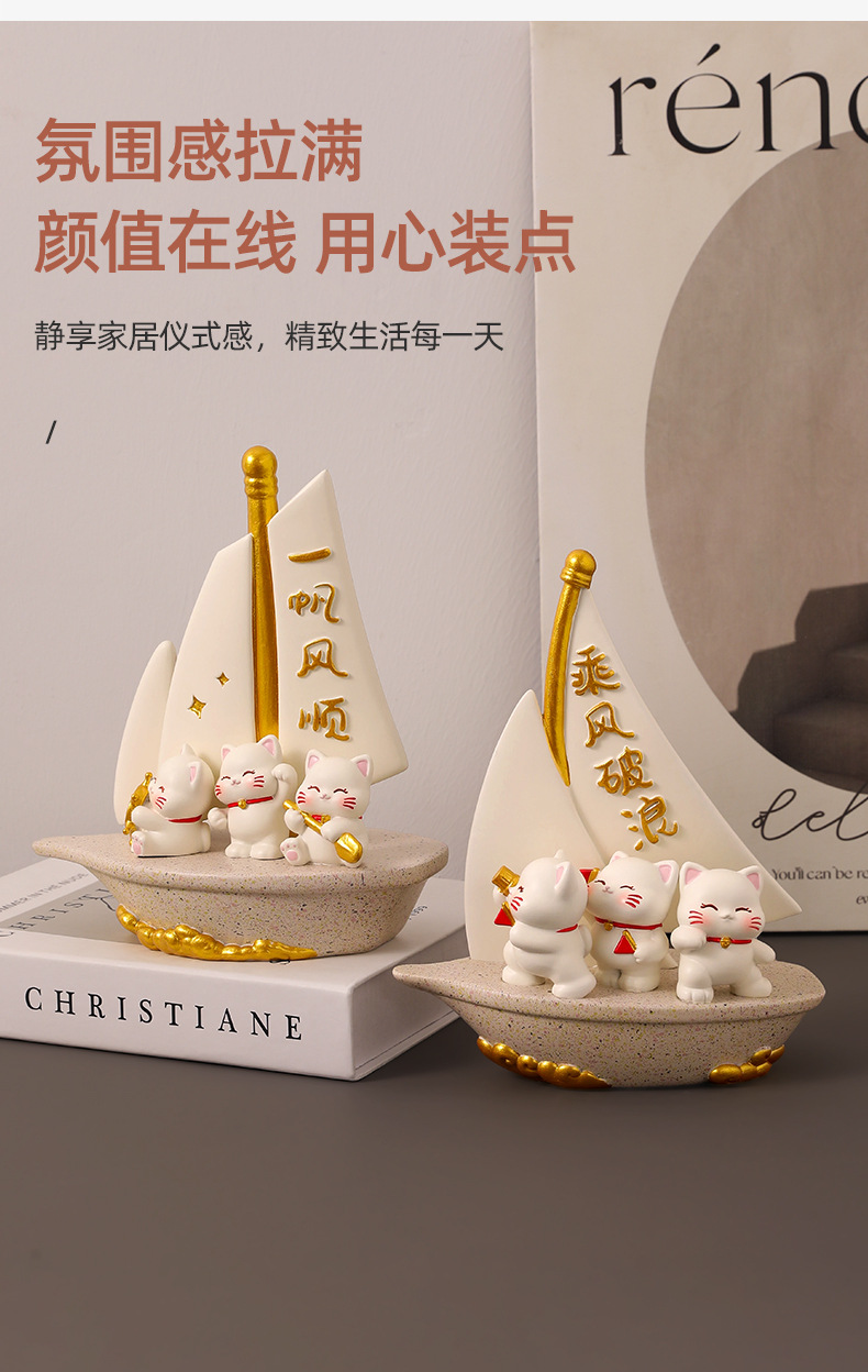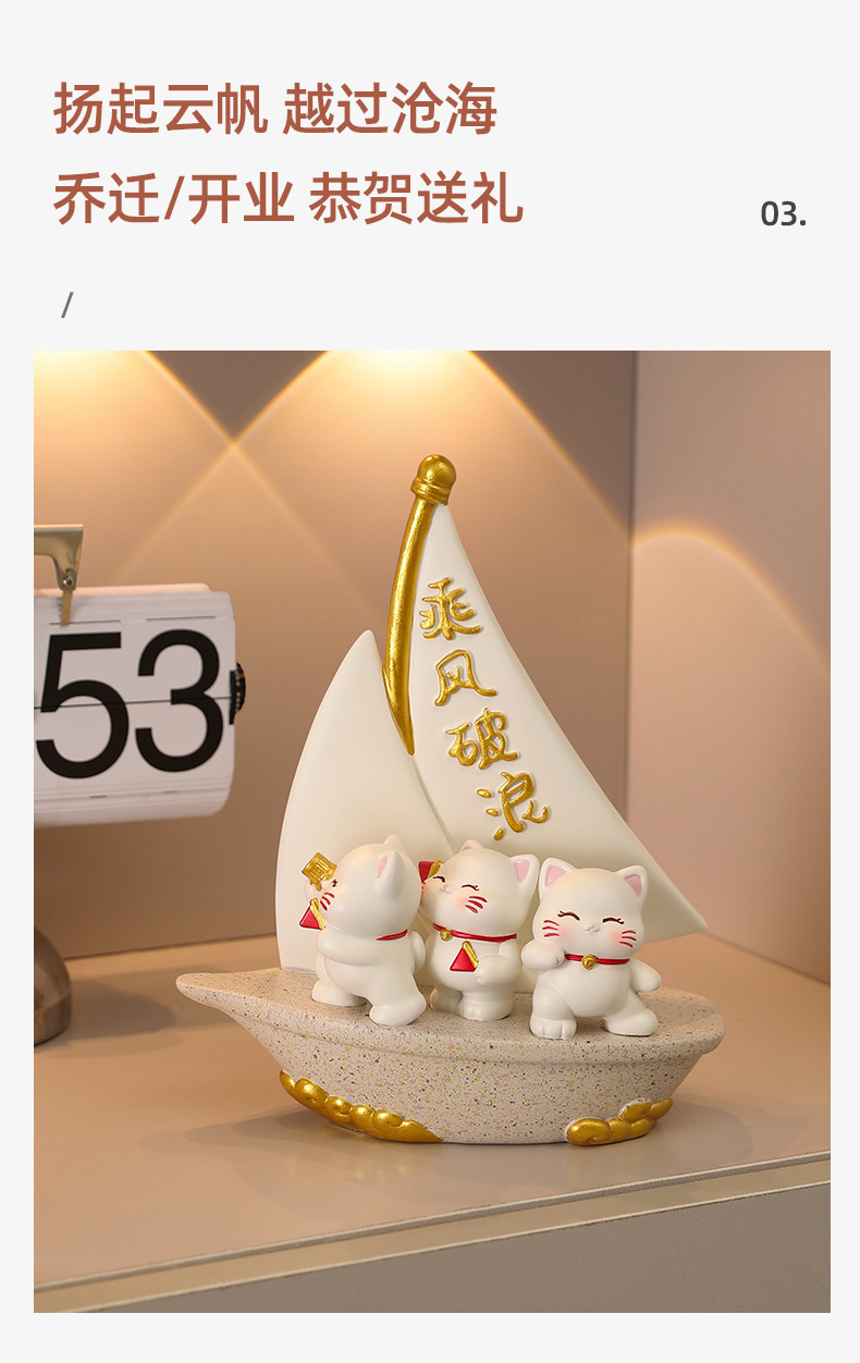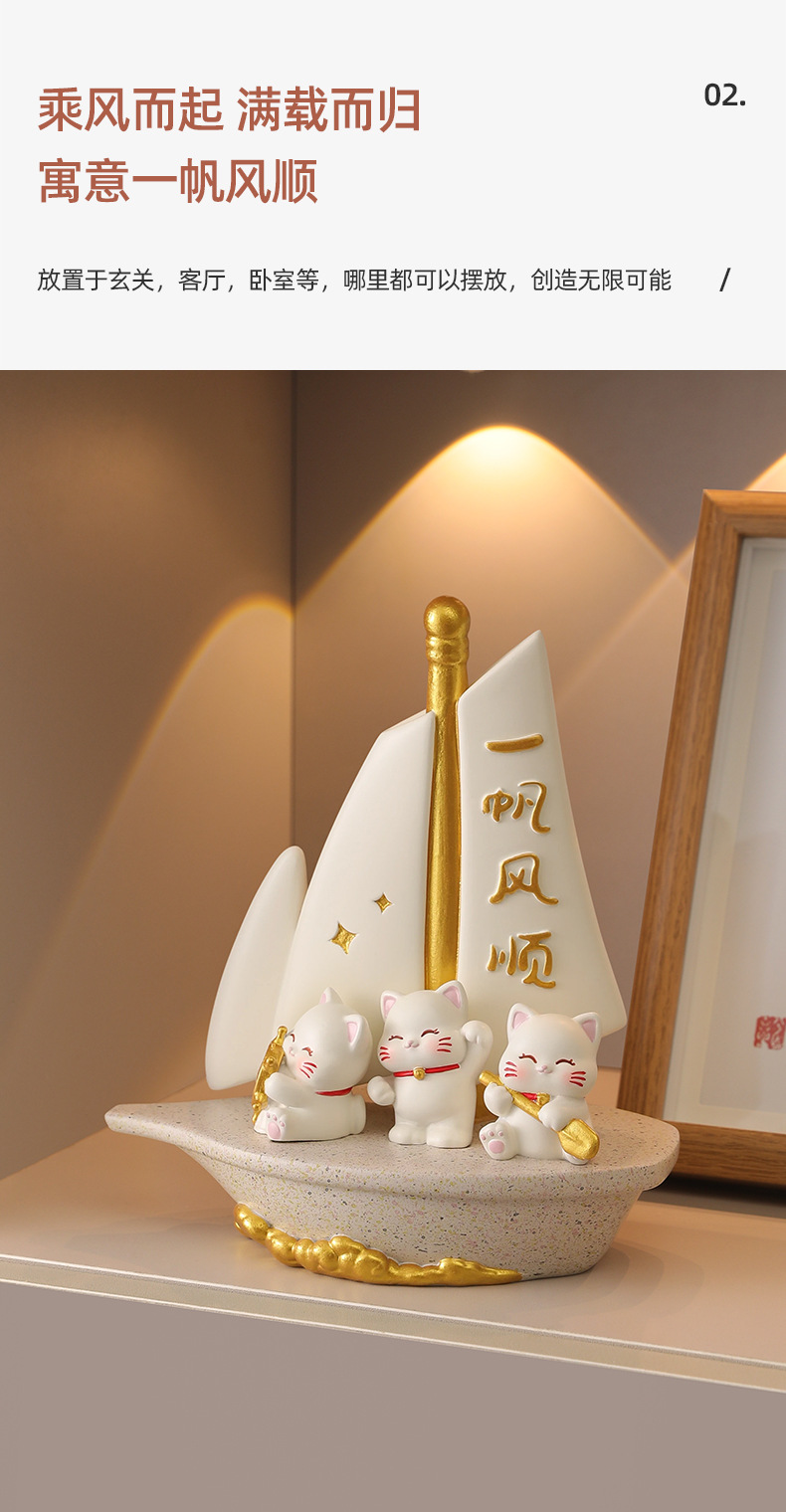 蛇年新款招财猫一帆风顺入户玄关树脂摆件 可爱卡通桌面装饰礼品