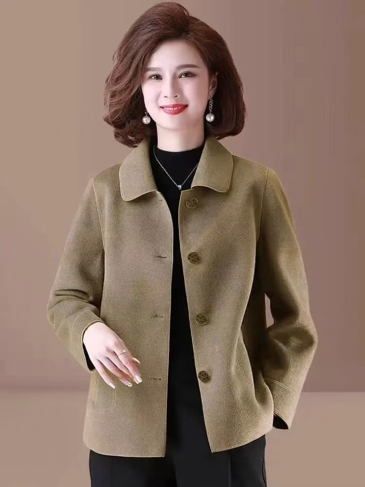 2025 봄과 가을 새로운 양면 벨벳 양면 트위드 마더 코트 옷깃 짧은 코트 모직 짧은 코트 외국 스타일