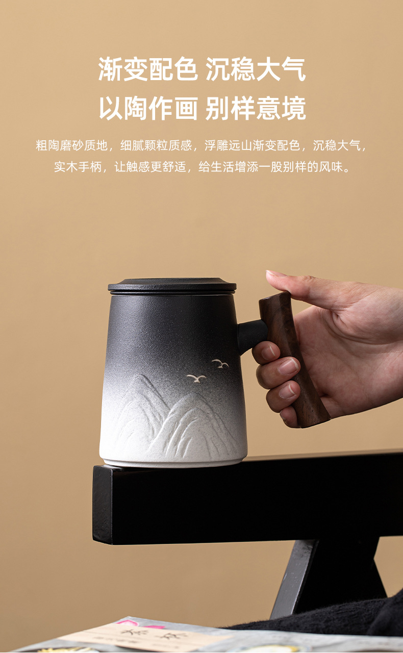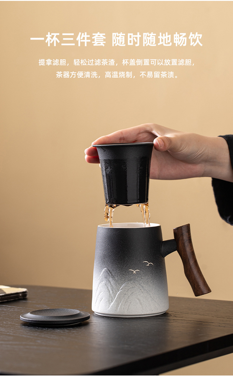 세라믹 차 컵 대형 용량 개인 특별 뚜껑 필터 사무실 가정용 차 분리 컵 실용적인 선물스토어 가기