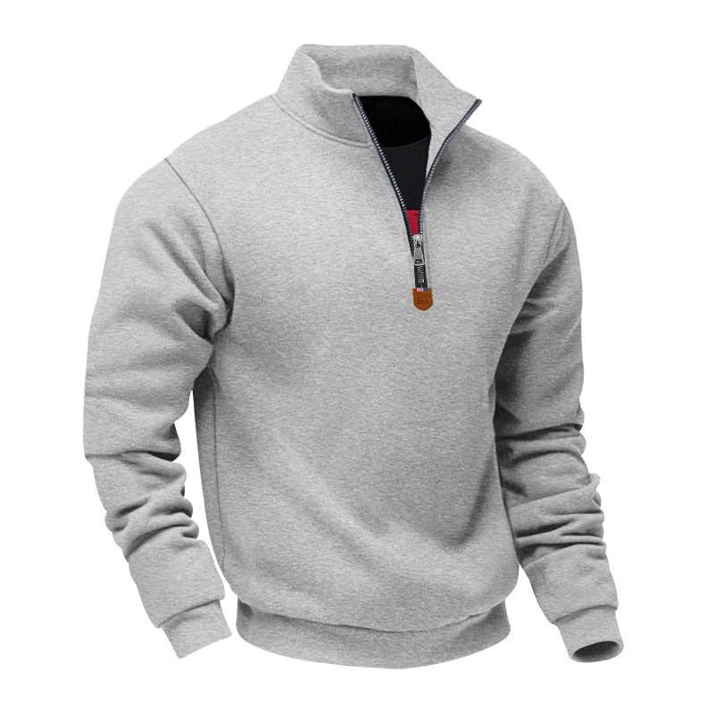 국경 간 아마존 아메리칸 스타일 헤비 기모 스킨 친화적 인 따뜻한 유지 남성 긴팔 반 지퍼 스포츠 캐주얼 땀
