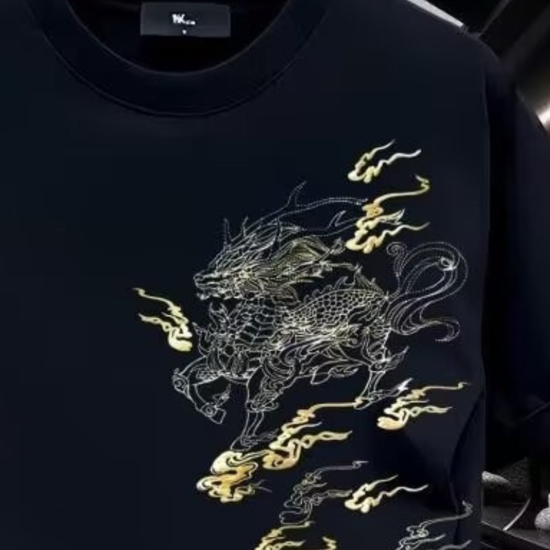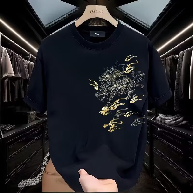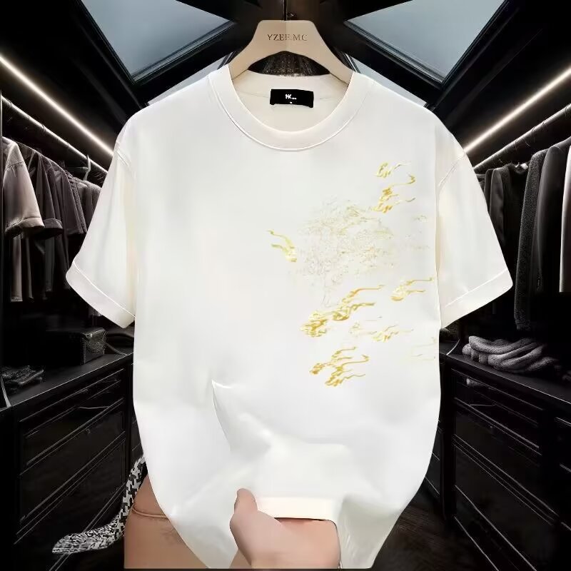 코튼 크루 넥 자수 티셔츠 남성용 트렌디 브랜드 반소매 민족 스타일 디자인 센스 티셔츠 루즈 캐주얼 반소매 베이스 셔츠스토어 가기