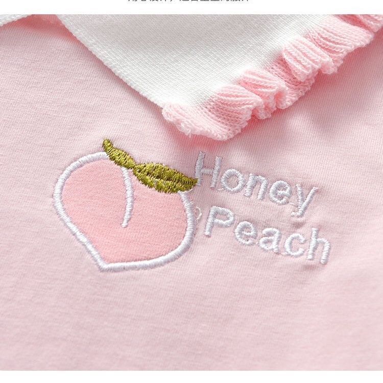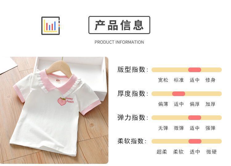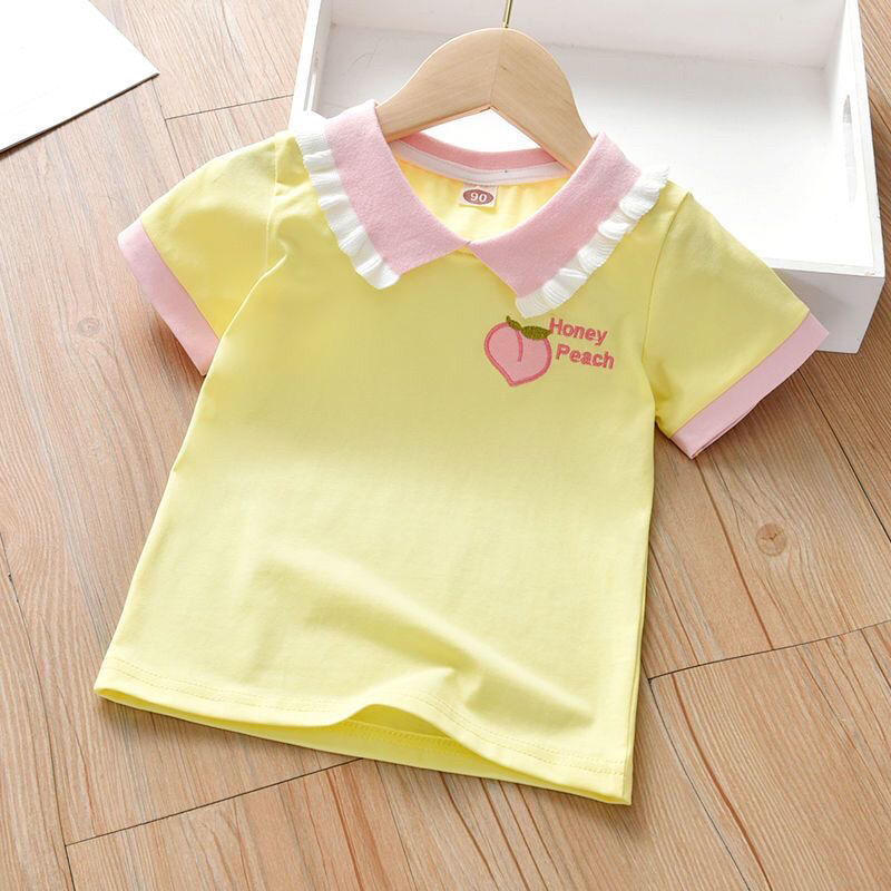 여자 여름 반팔 티셔츠 아기 복숭아 자수 라파 르 탑 어린이 한국식 서양식 베이스 셔츠 얇은 트렌디
