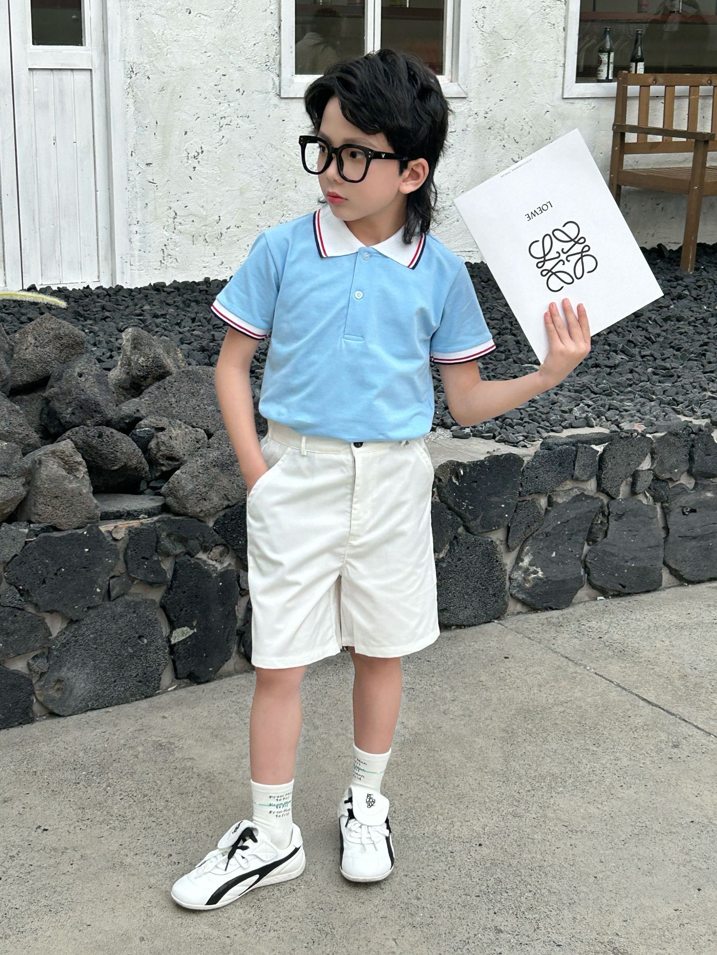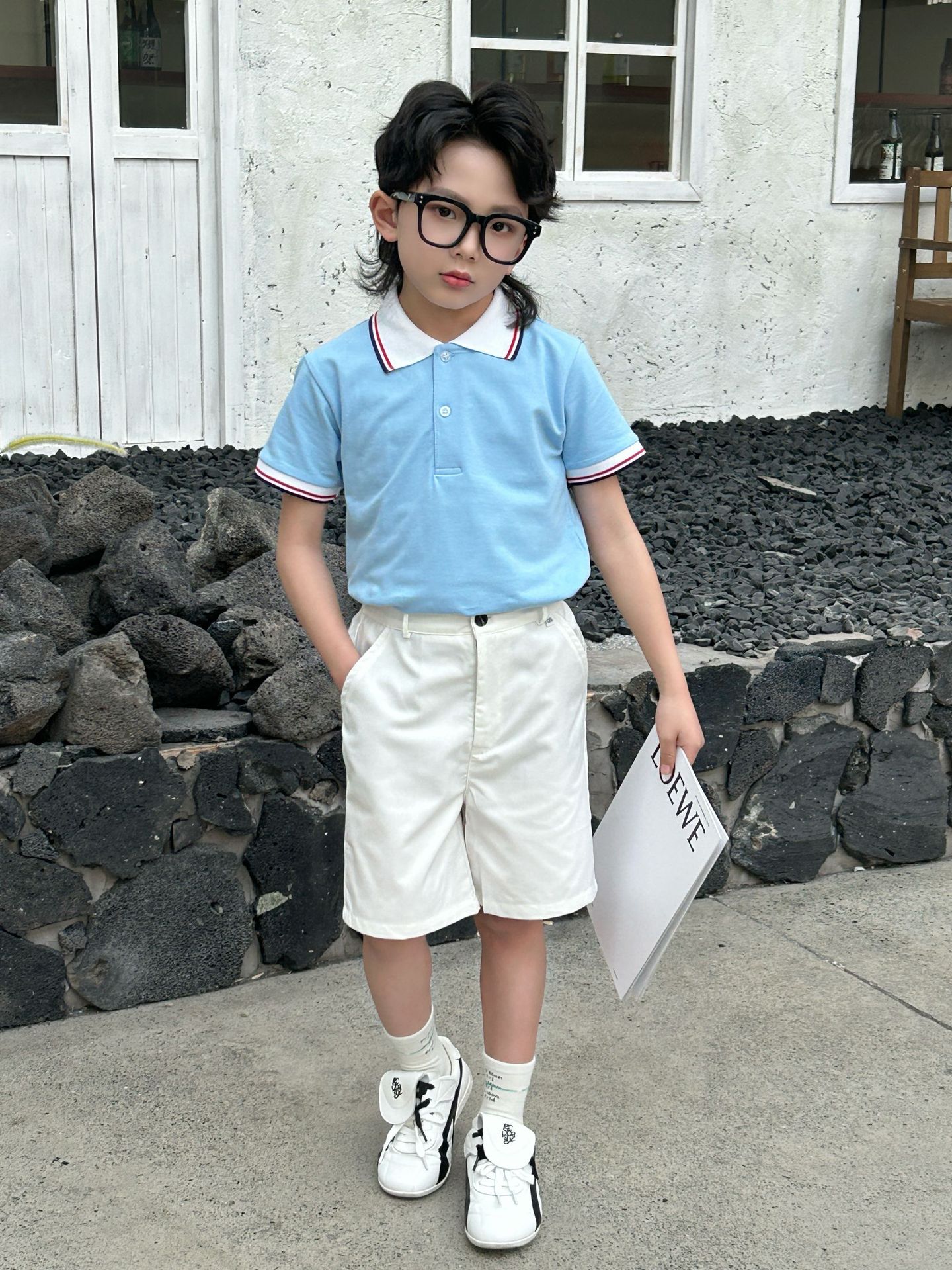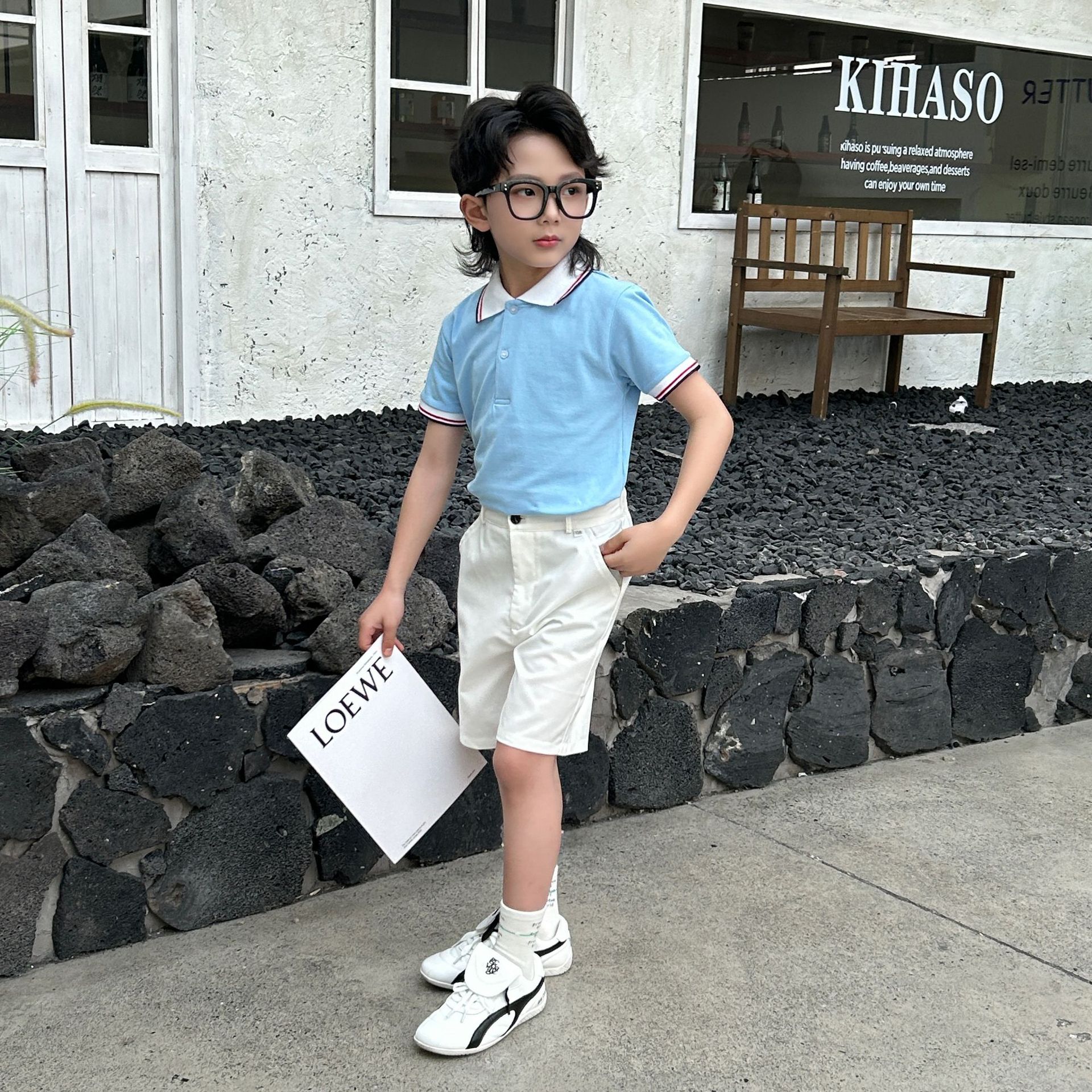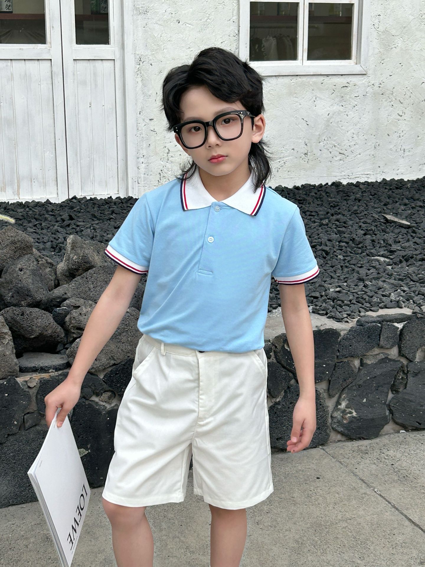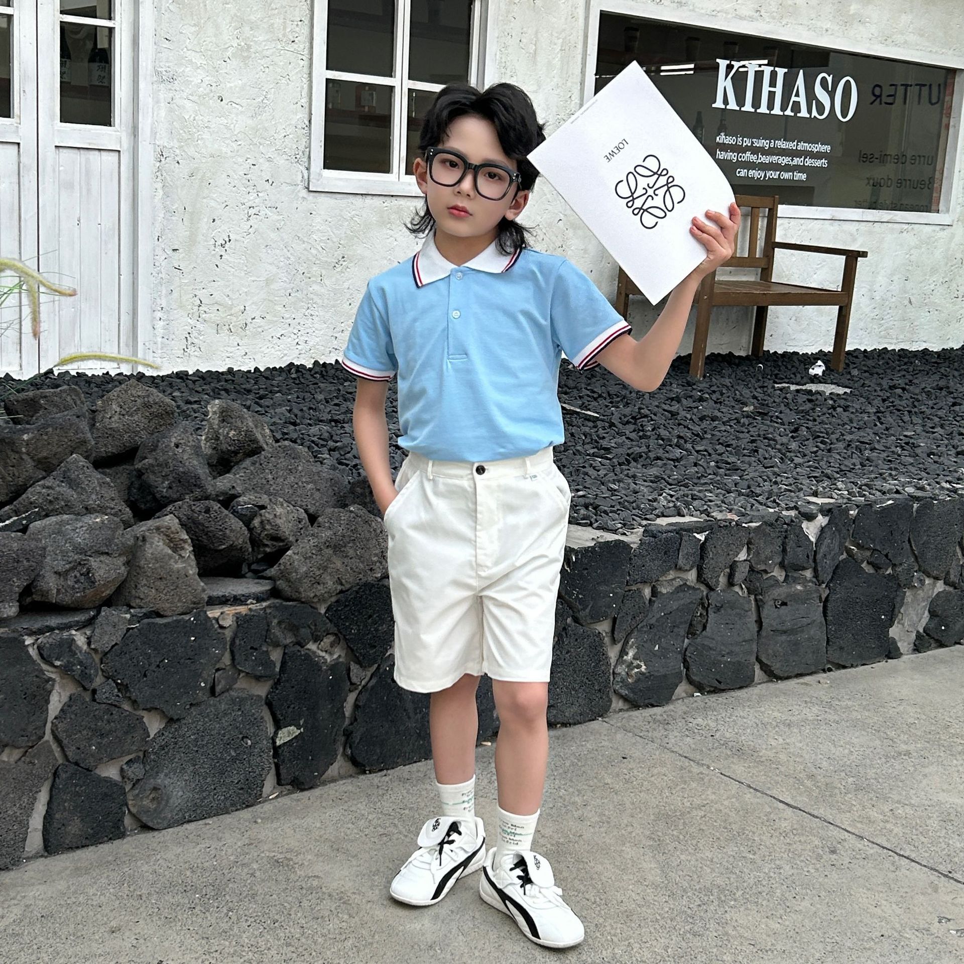 남학생의 반팔 2025 여름 새로운 폴로 셔츠 어린이 라셀 잘 생긴 유행 소년 중 · 대형 어린이 탑 바지스토어 가기