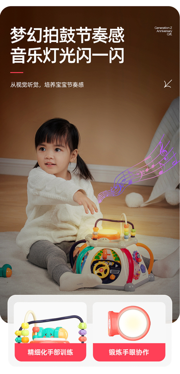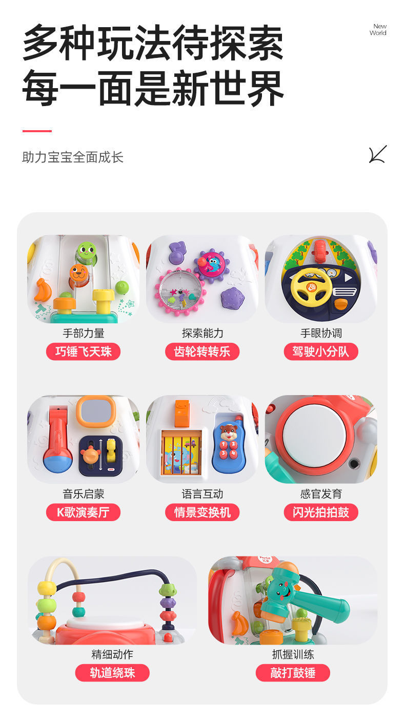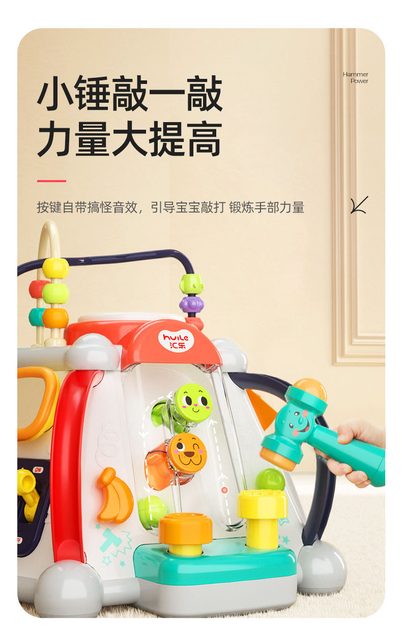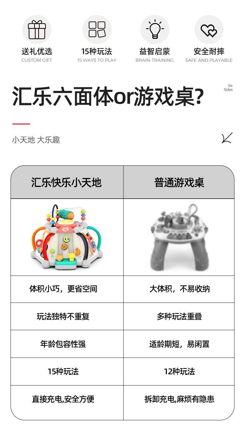 汇乐玩具快乐小天地806儿童宝宝早教学习多功能游戏桌六面拍拍鼓