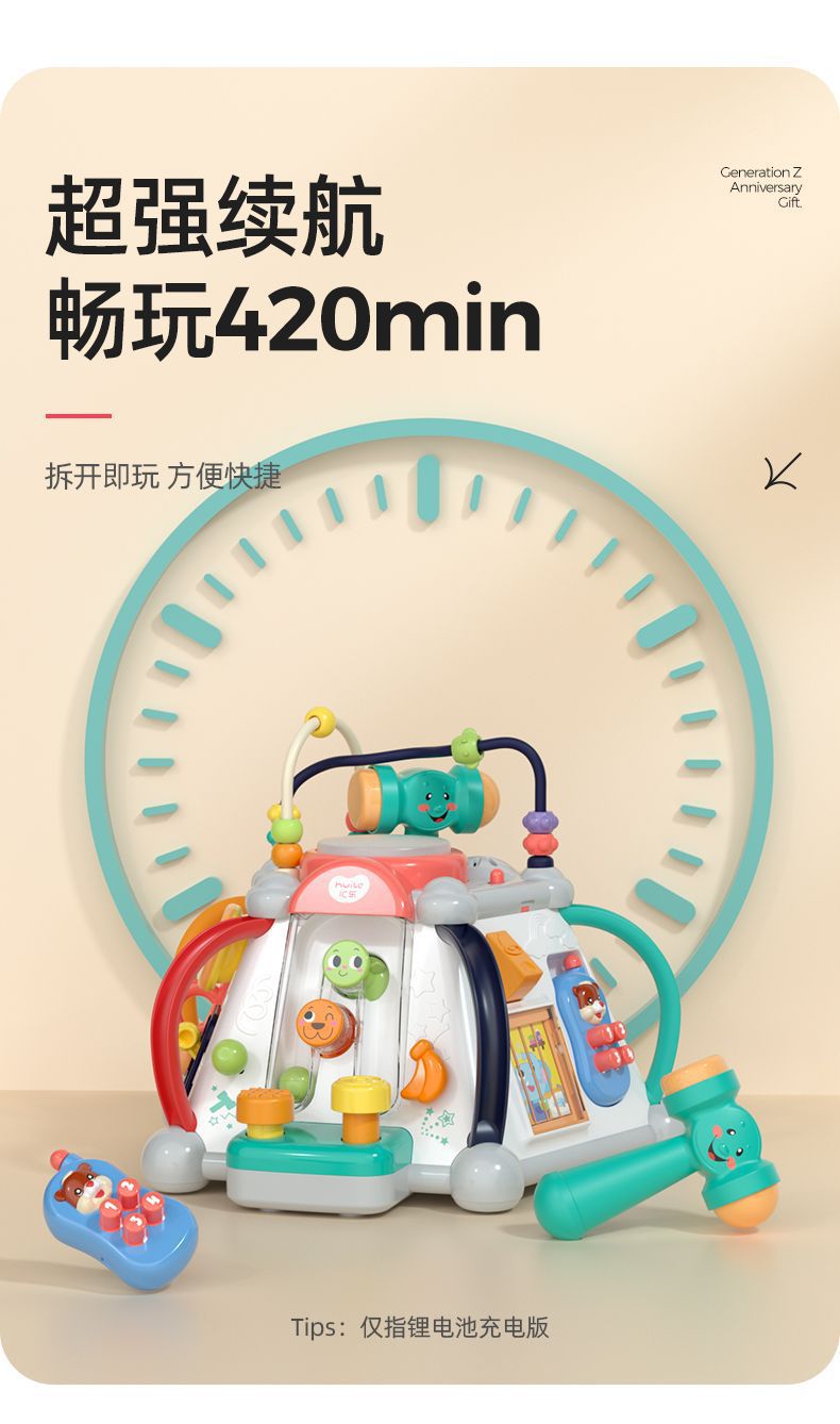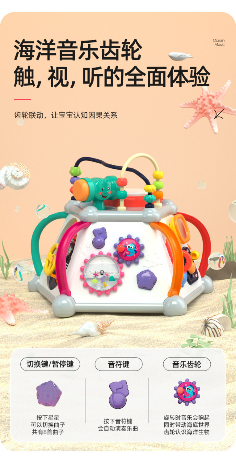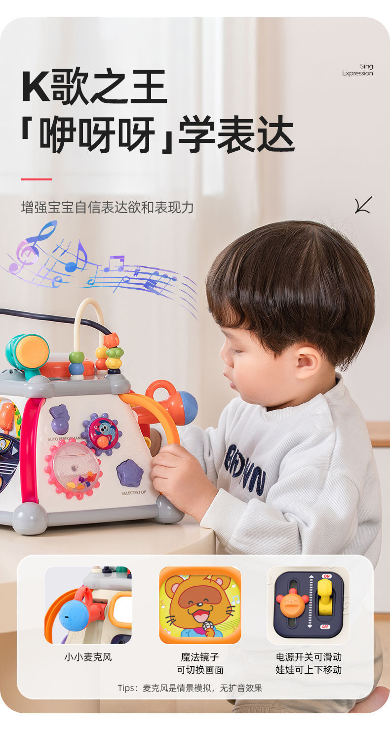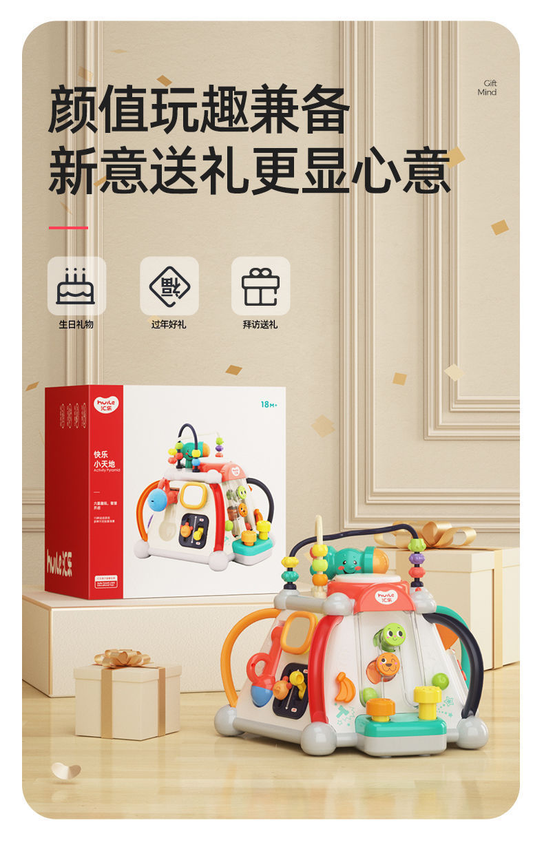 汇乐玩具快乐小天地806儿童宝宝早教学习多功能游戏桌六面拍拍鼓