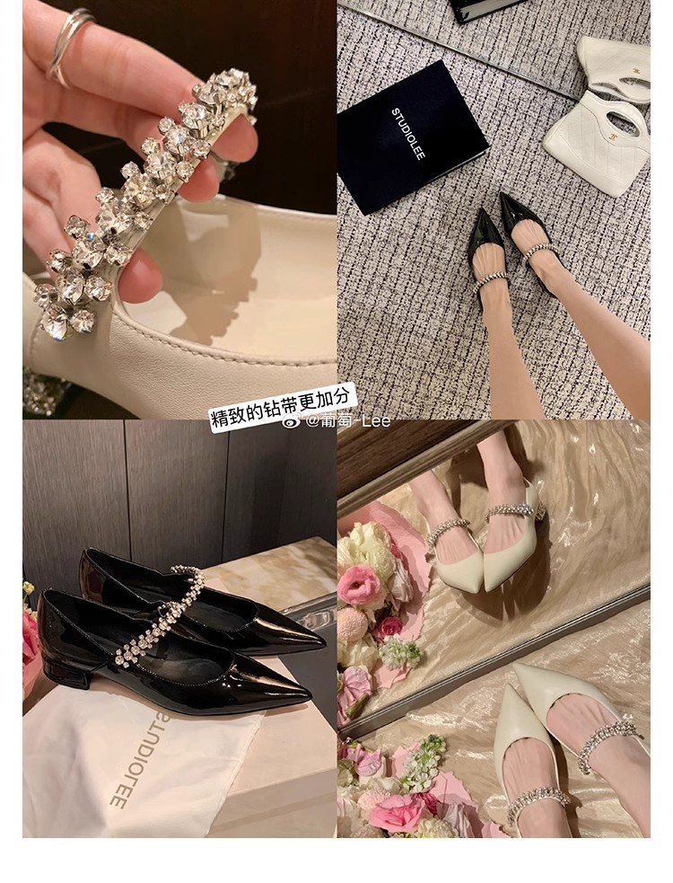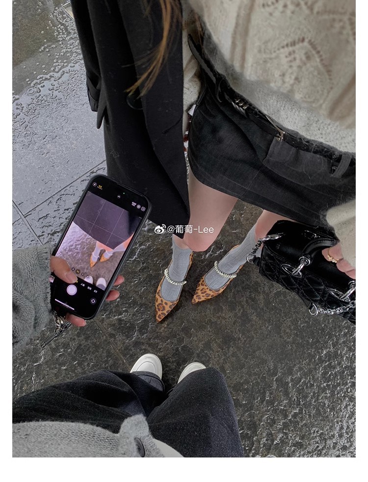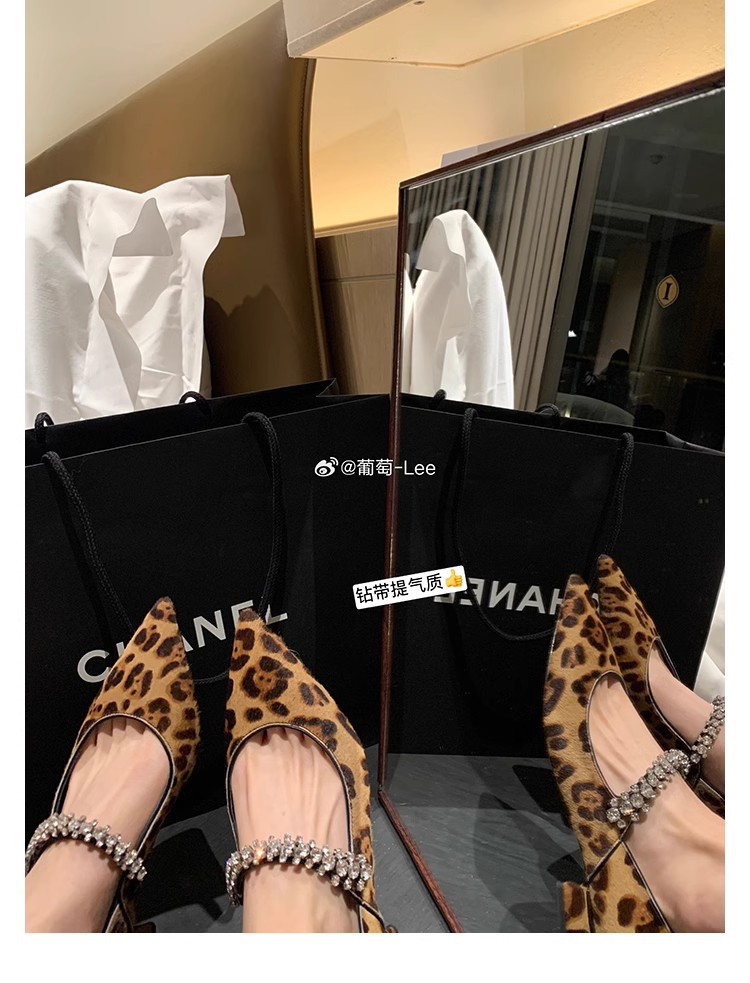프랑스 스타일의 우아한 뾰족코 반짝이 스트랩 다용도 레오파드 프린트 캐주얼 얕은 굽 여성용 봄 신발스토어 가기