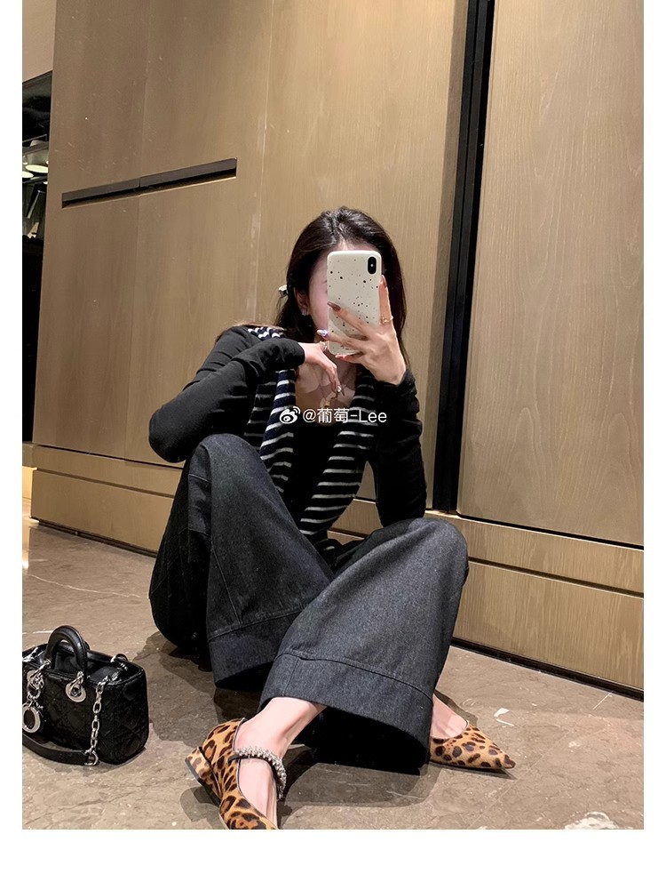 프랑스 스타일의 우아한 뾰족코 반짝이 스트랩 다용도 레오파드 프린트 캐주얼 얕은 굽 여성용 봄 신발