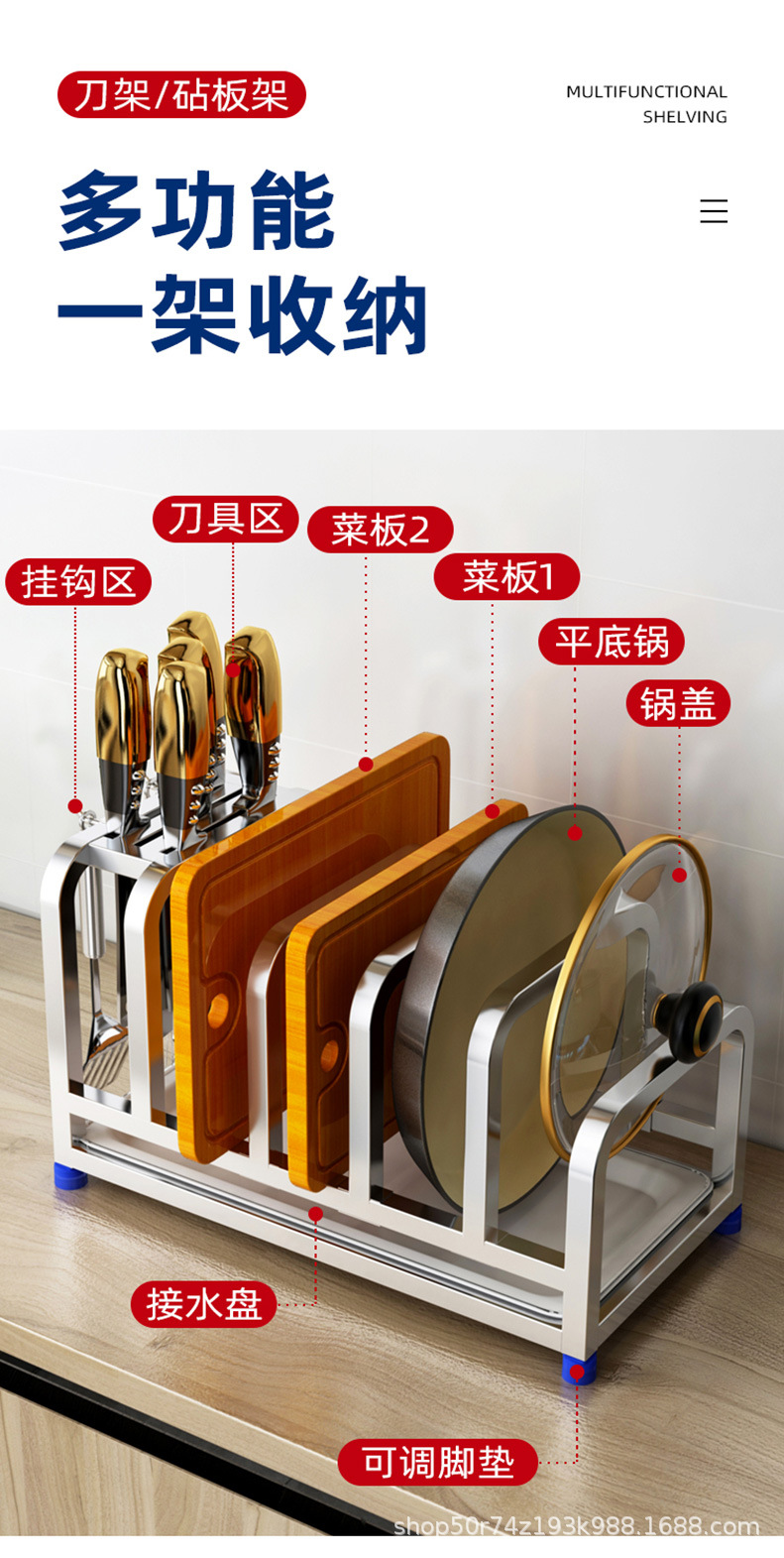 주방 스테인레스 스틸 나이프 랙 스토리지 랙 카운터 탑 스토리지 랙 주방 나이프 커팅 보드 배치 랙 가정용 용품 Daquan 나이프 랙스토어 가기