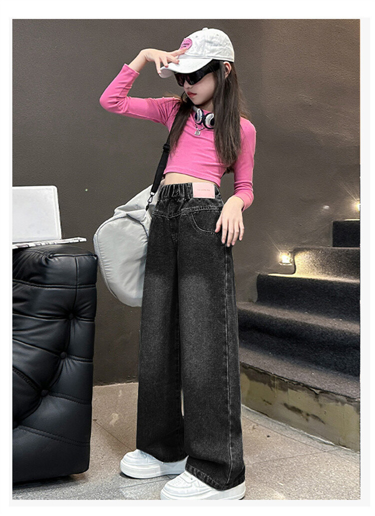 소녀의 봄과 가을 청바지 2025 유행 소녀 한국 스타일 세련된 올매치 스트레이트 다섯개 별 바지스토어 가기