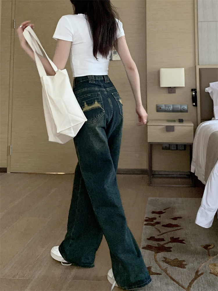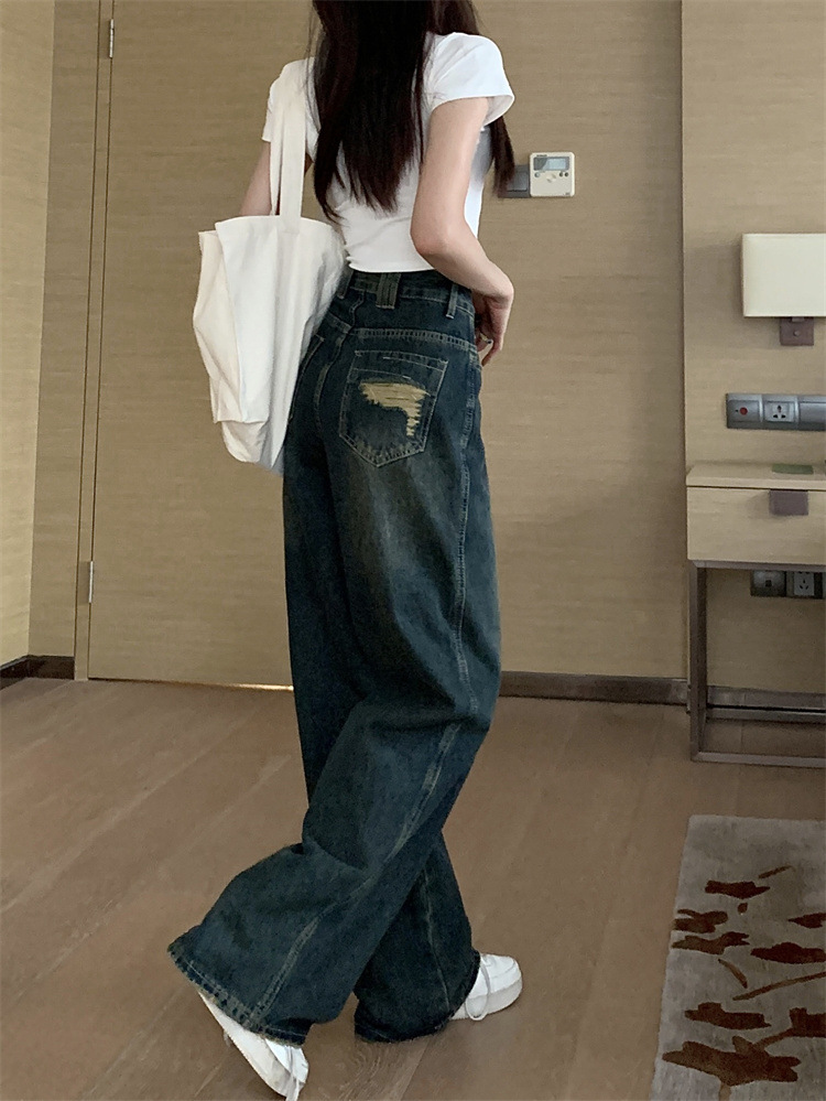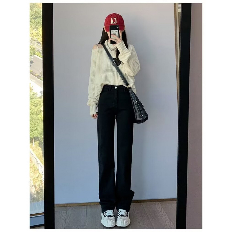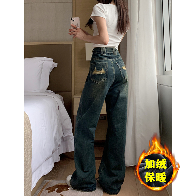 약간의 뚱뚱한 mm 기모 스트레이트 플러스 사이즈 청바지 여성의 2024 가을과 겨울 새로운 높은 허리 슬리밍 작은 넓은 다리 바지스토어 가기