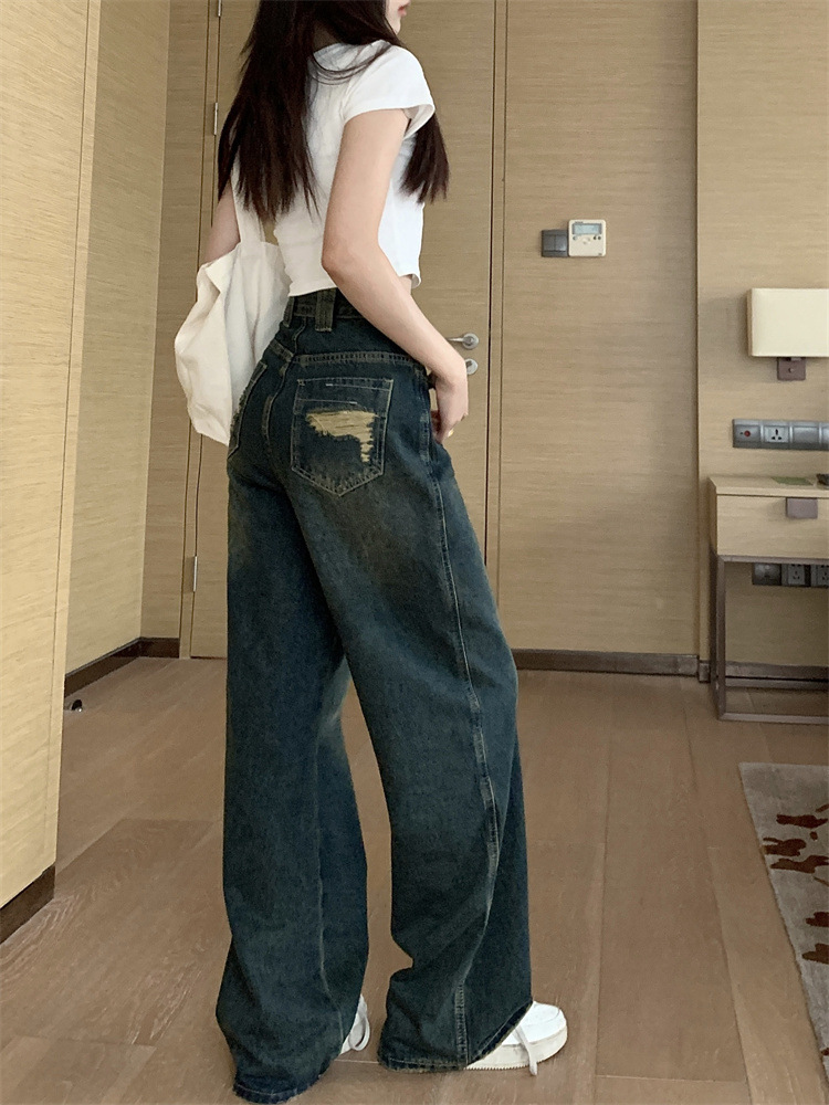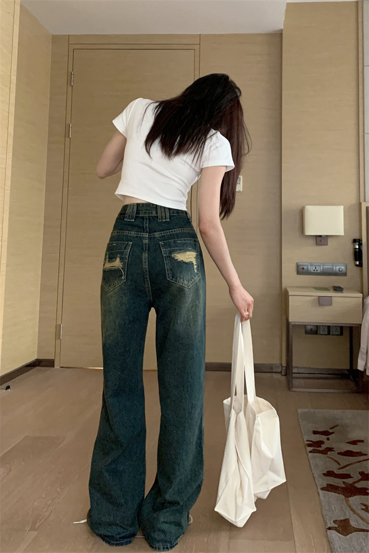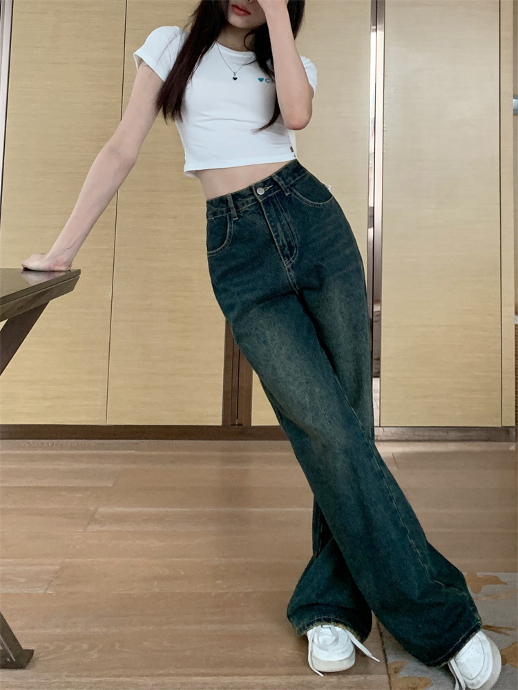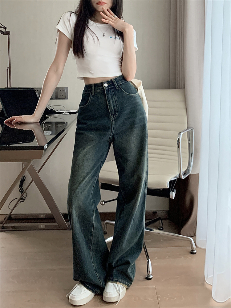 약간의 뚱뚱한 mm 기모 스트레이트 플러스 사이즈 청바지 여성의 2024 가을과 겨울 새로운 높은 허리 슬리밍 작은 넓은 다리 바지
