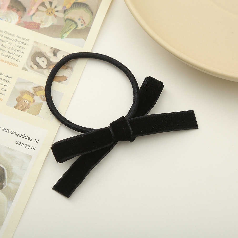 한국 스타일 블랙 벨벳 활 헤어 로프 발레 스타일 헤어 링 여성 사이드 클립 방귀 클립 간단한 고무 벨트 헤어 로프스토어 가기