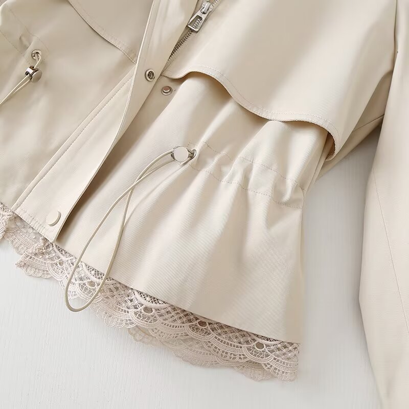 작은 여성 윈드 브레이커 짧은 2025 봄 새로운 허리 끈 캐주얼 칼라 재킷 코트 F851053800