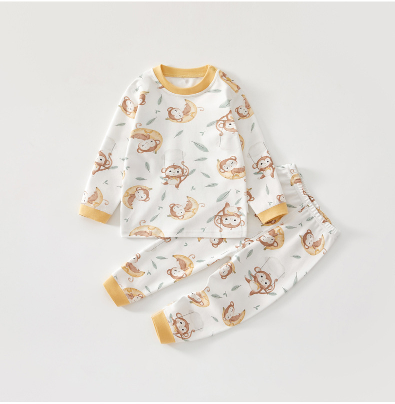 어린 이용 홈 의류 속옷 세트 아기 면화 봄과 가을 긴 소매 상단 소년 소녀 아기 따뜻한 가을 옷 긴 존스