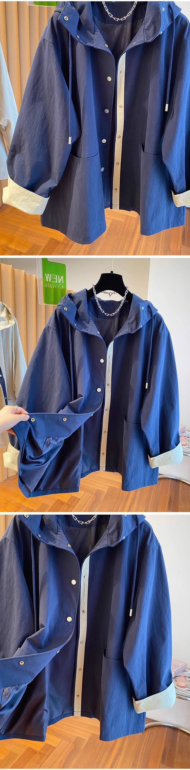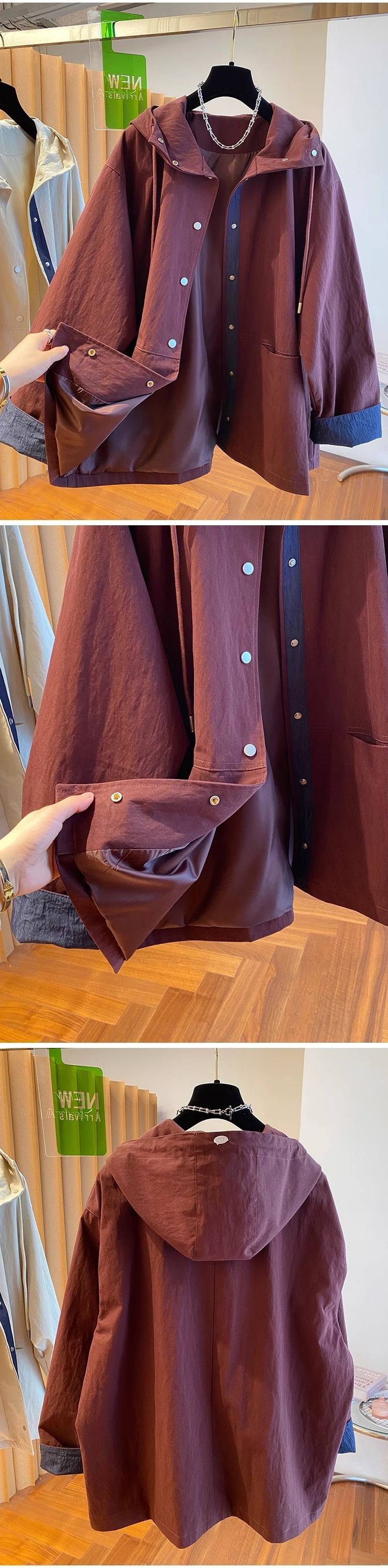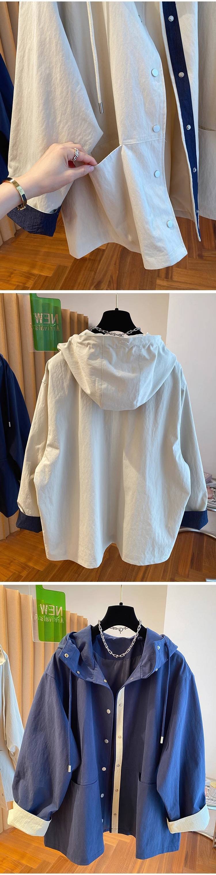 외국식 콘트라스트 컬러 후드 코트 여자 봄 봄 느슨한 올 매치 최고 하이 엔드 틈새 맞춤 미드 길이 재킷
