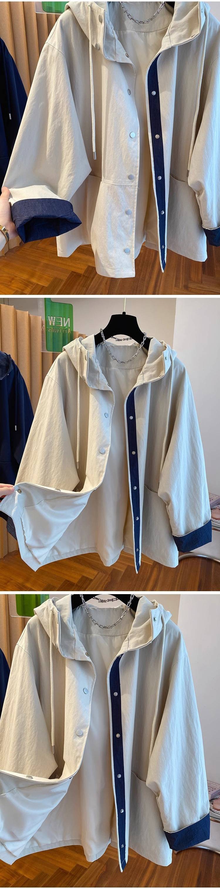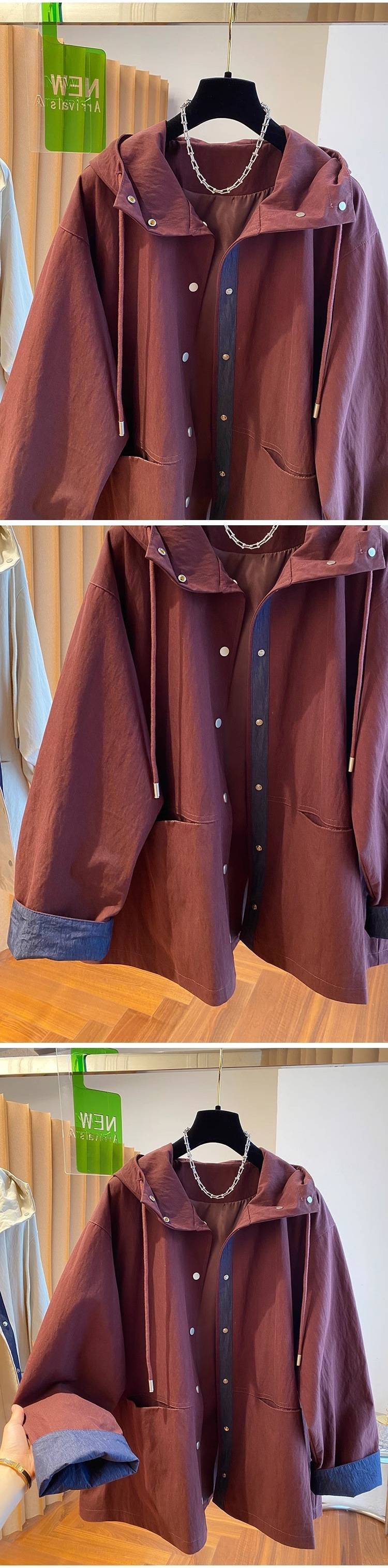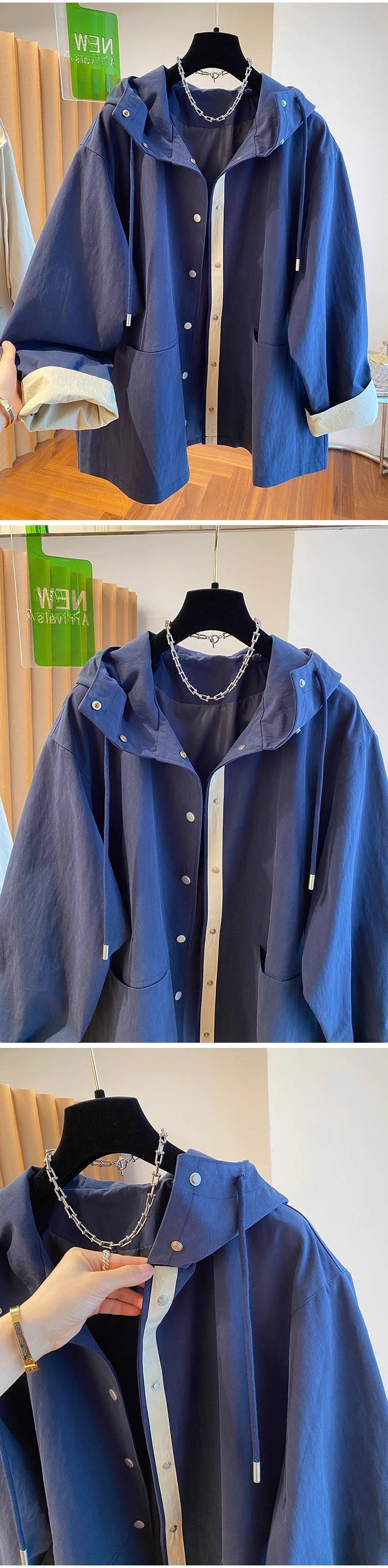 외국식 콘트라스트 컬러 후드 코트 여자 봄 봄 느슨한 올 매치 최고 하이 엔드 틈새 맞춤 미드 길이 재킷