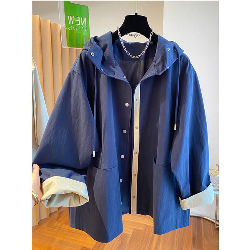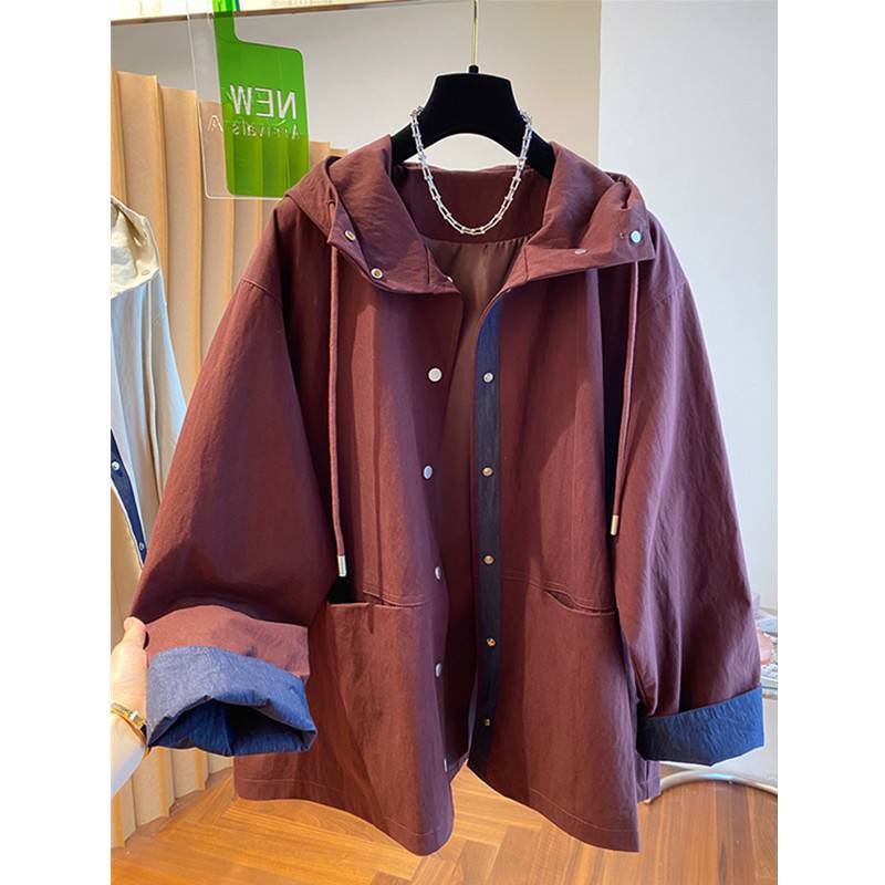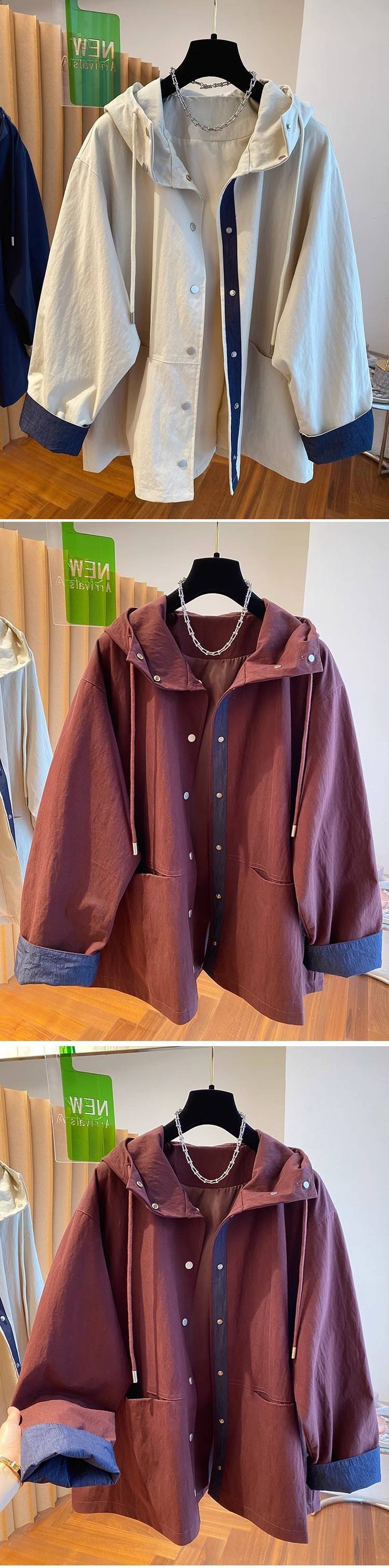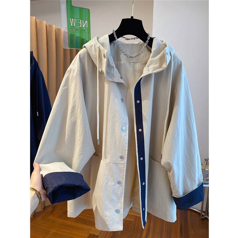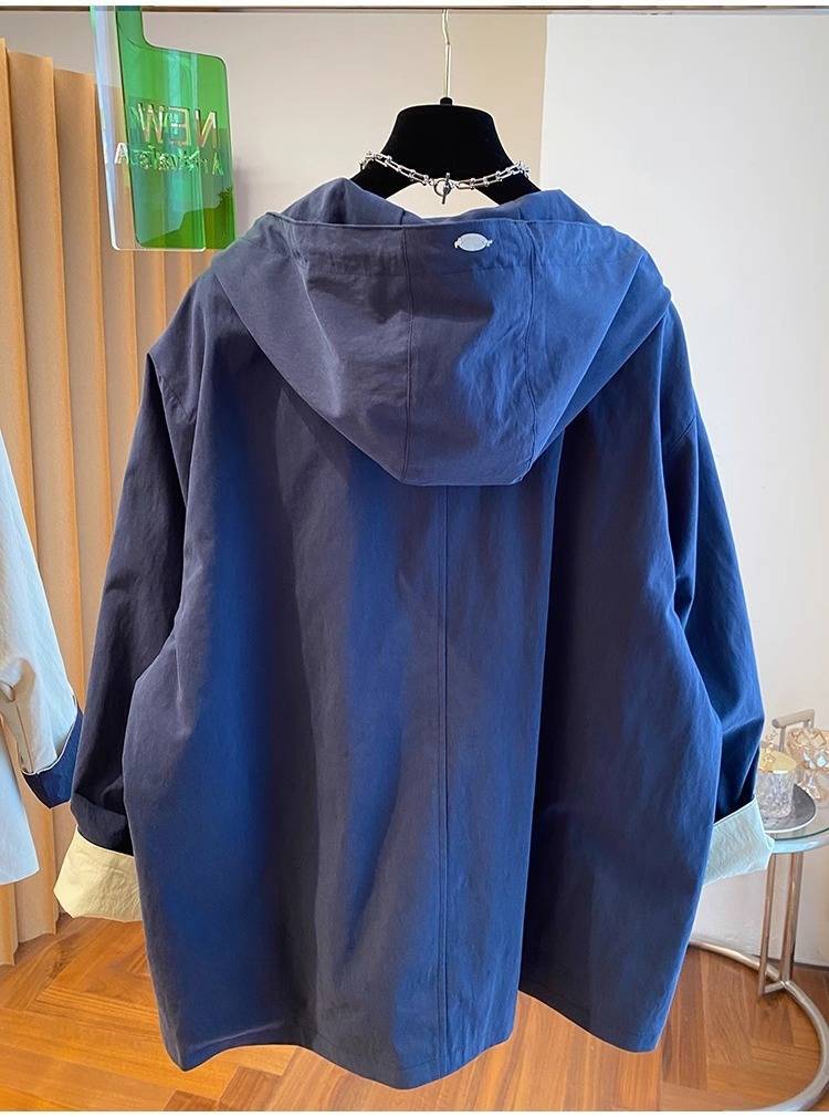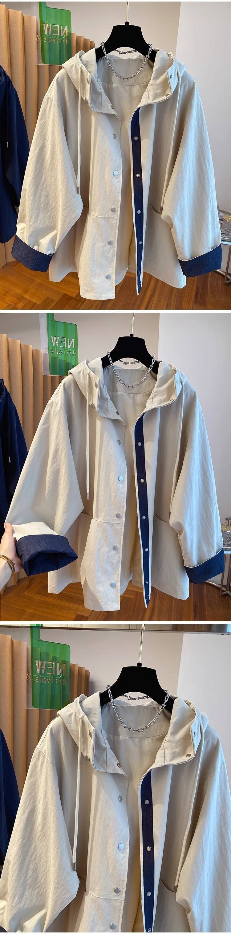 외국식 콘트라스트 컬러 후드 코트 여자 봄 봄 느슨한 올 매치 최고 하이 엔드 틈새 맞춤 미드 길이 재킷스토어 가기