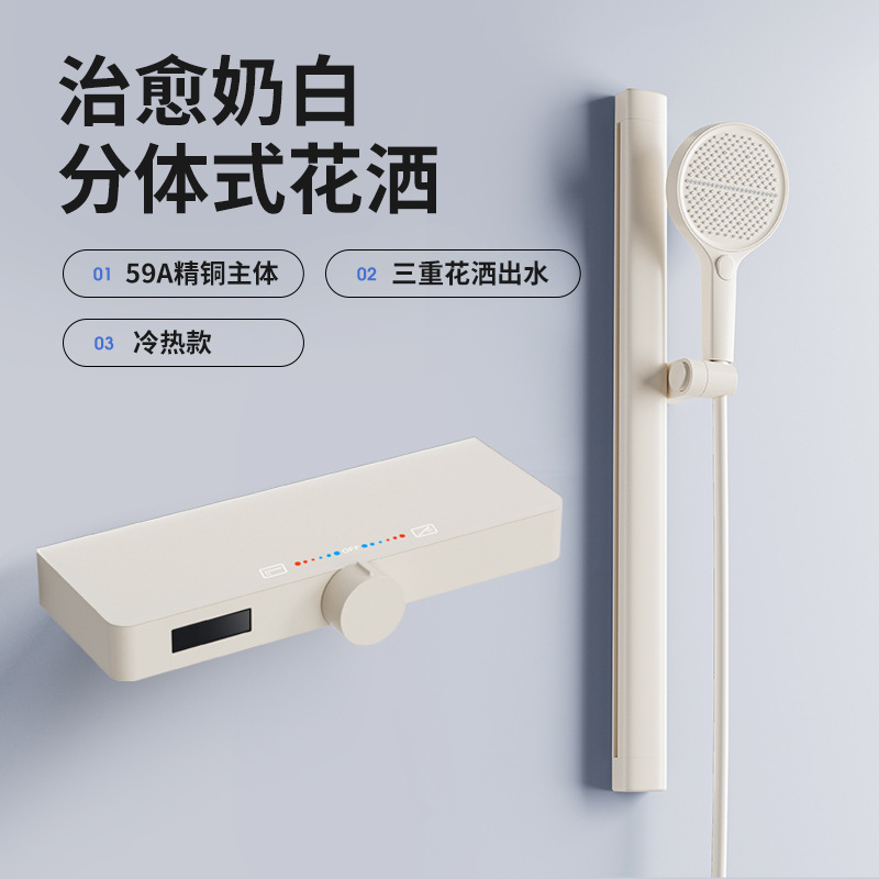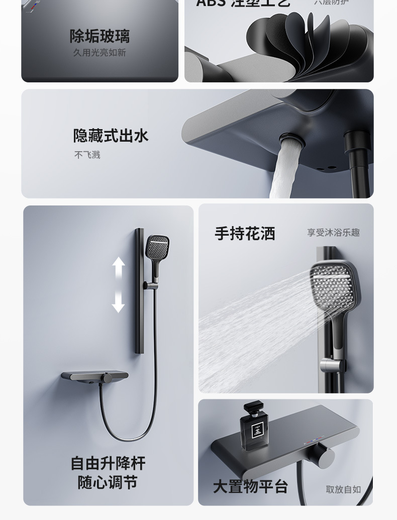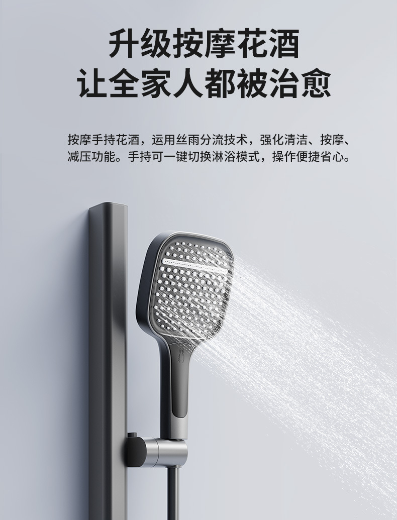 총 회색 물 도금 가구 샤워 세트 일정한 온도 디지털 디스플레이 모든 구리 바디 압축 샤워 헤드 샤워 헤드스토어 가기