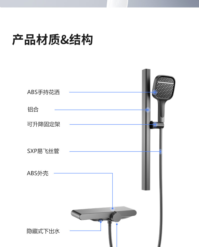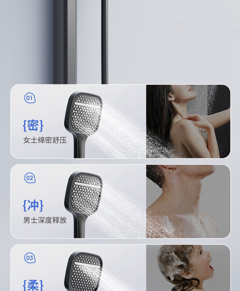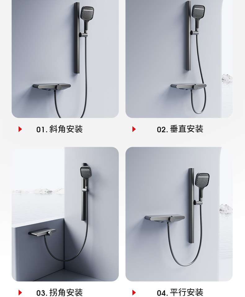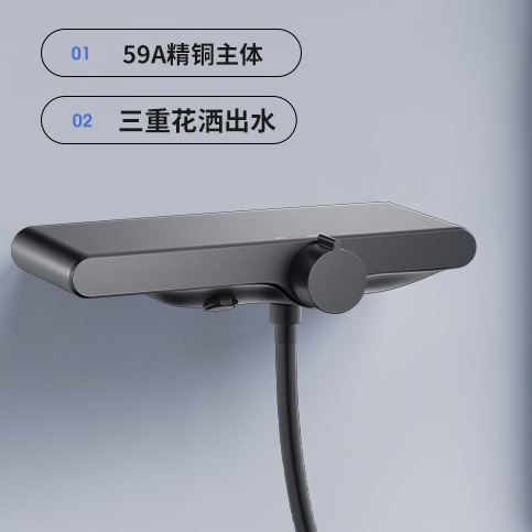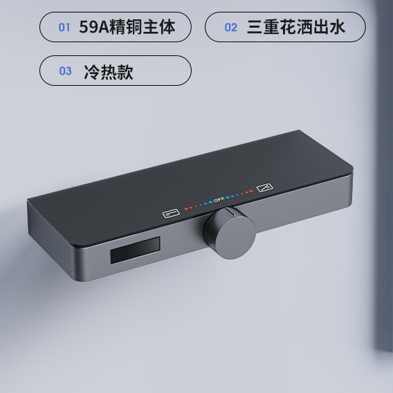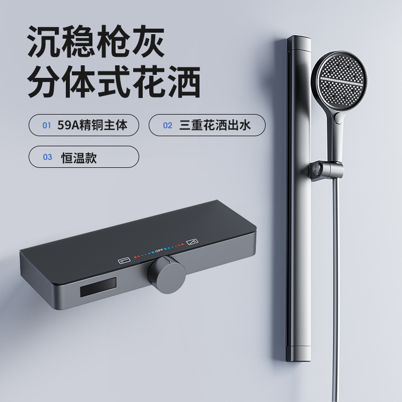 총 회색 물 도금 가구 샤워 세트 일정한 온도 디지털 디스플레이 모든 구리 바디 압축 샤워 헤드 샤워 헤드