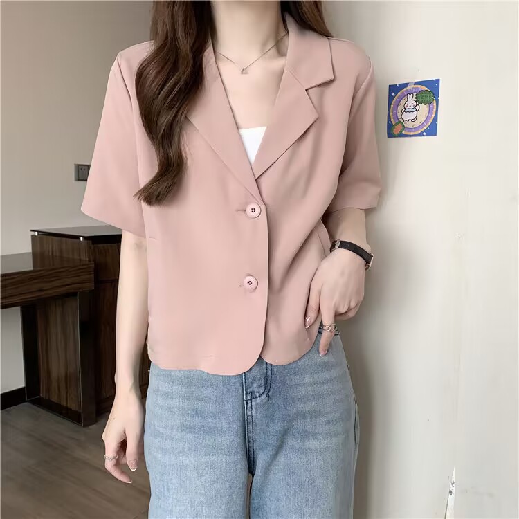 여성을위한 정장 칼라 반팔 옷깃 재킷 여름 2025 새로운 디자인 틈새 얇은 셔츠 짧은 탑