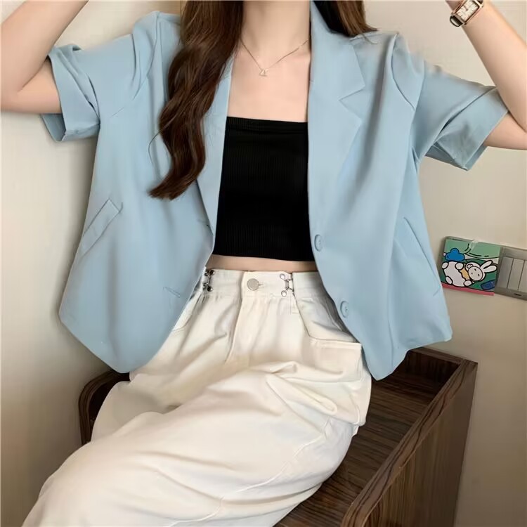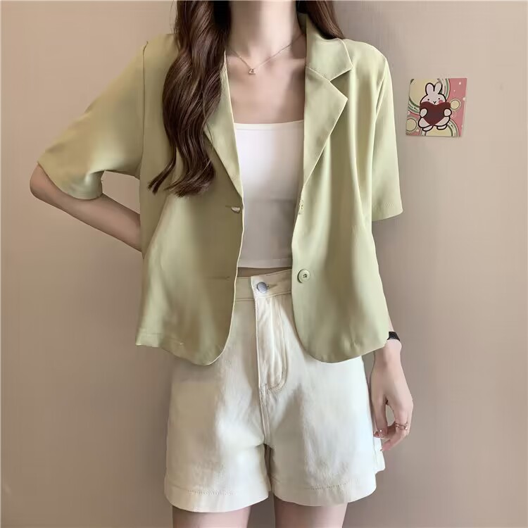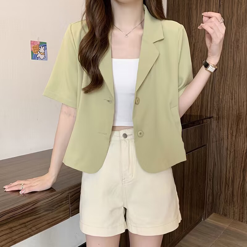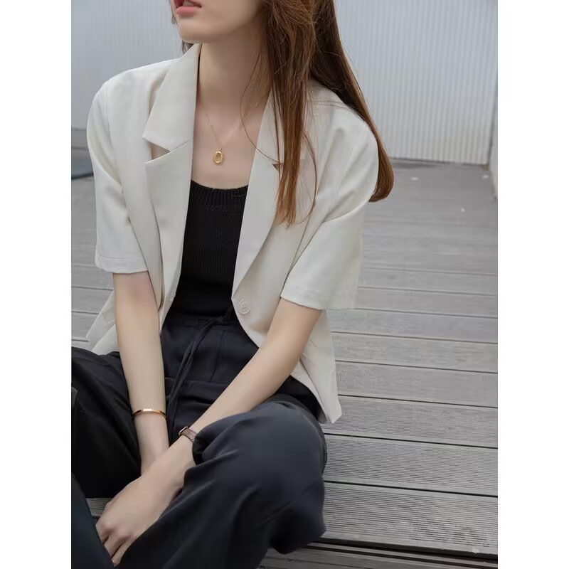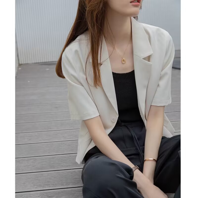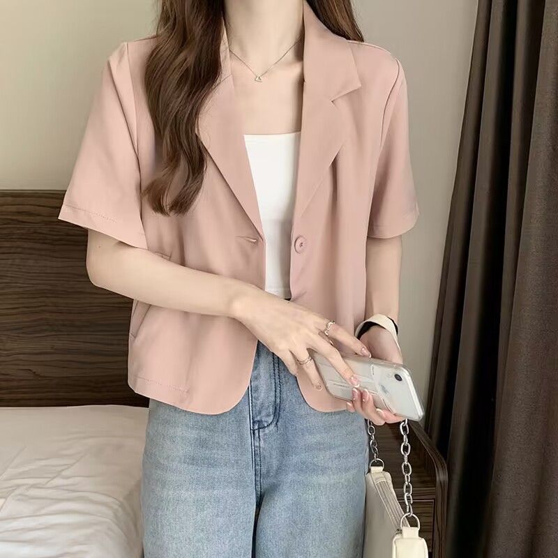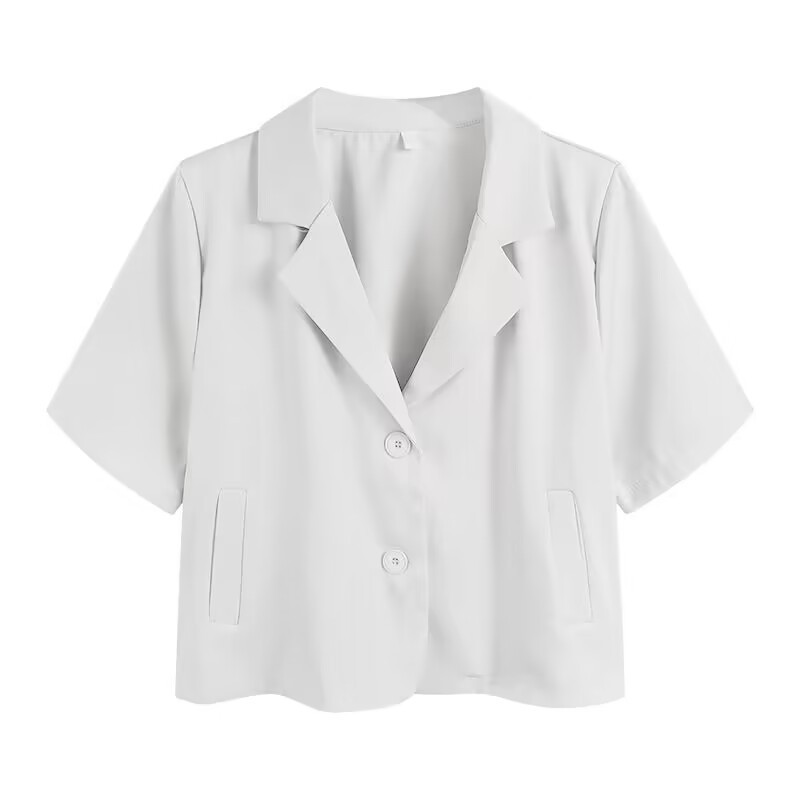 여성을위한 정장 칼라 반팔 옷깃 재킷 여름 2025 새로운 디자인 틈새 얇은 셔츠 짧은 탑스토어 가기
