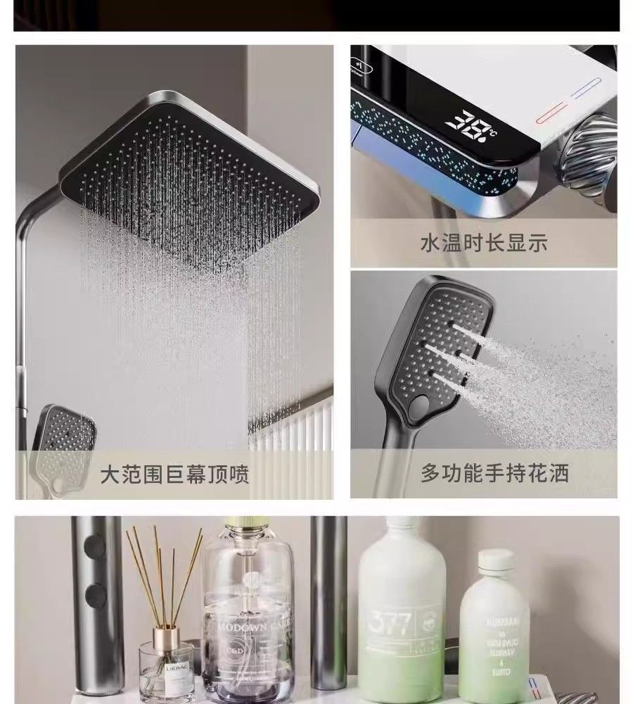 모든 구리 샤워 세트 가정용 디지털 디스플레이 일정한 온도 대기 램프 압축 욕실 피아노 키 Gipsophila 샤워스토어 가기