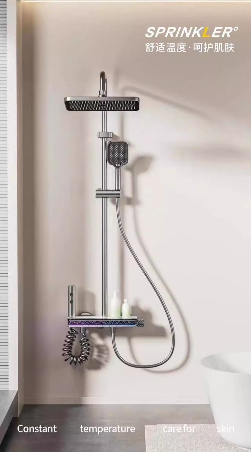 모든 구리 샤워 세트 가정용 디지털 디스플레이 일정한 온도 대기 램프 압축 욕실 피아노 키 Gipsophila 샤워