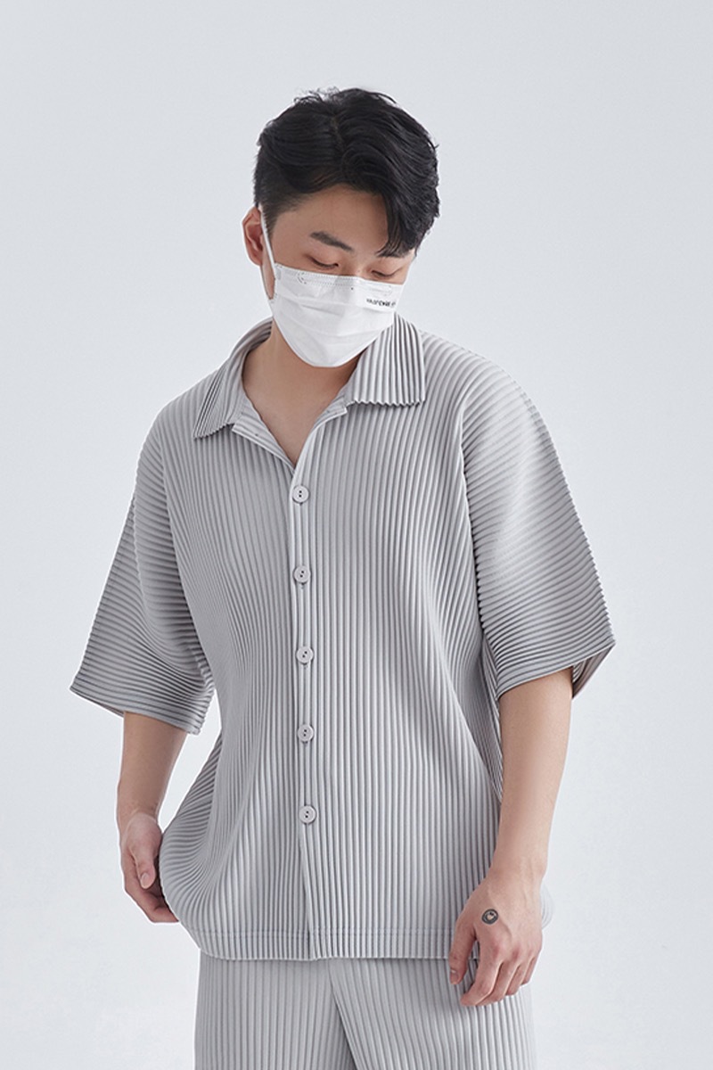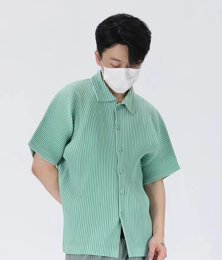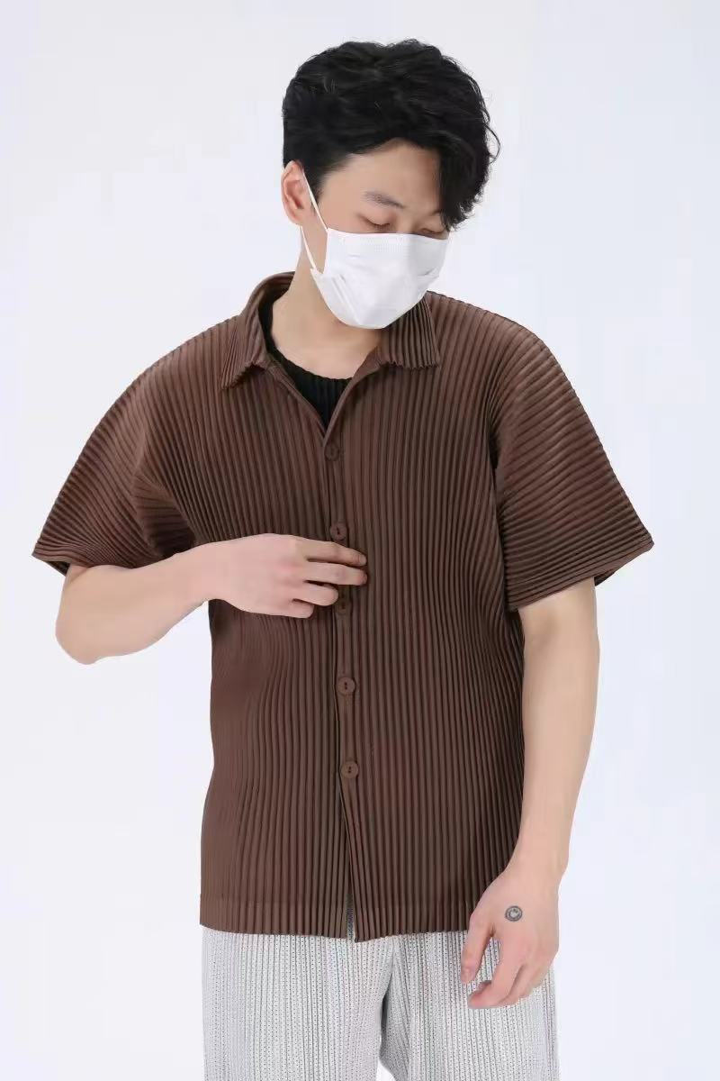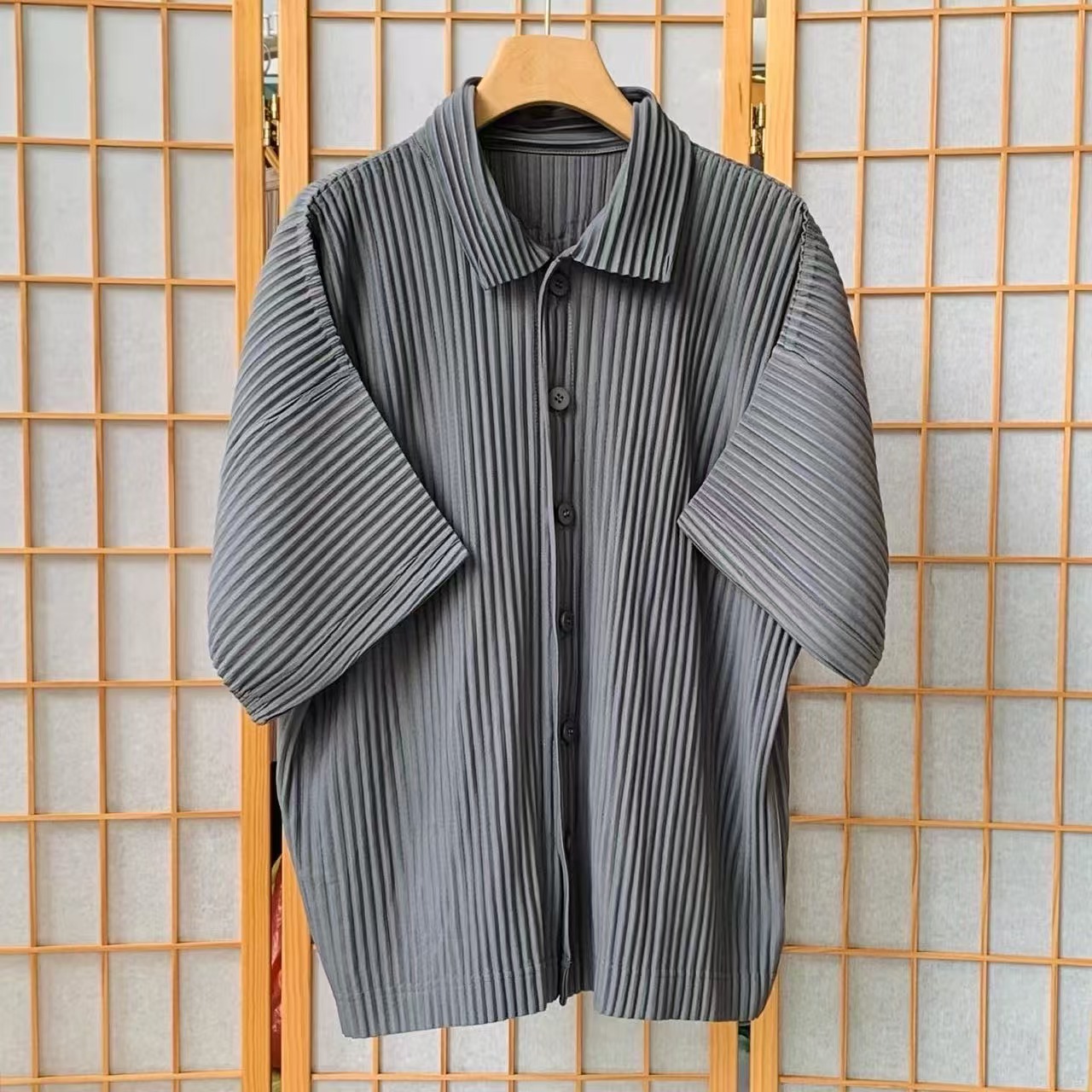 미야케 스타일 플리츠 반팔 셔츠 남성 탑 반팔 여름 얇은 루즈 캐주얼 재킷 JJ122