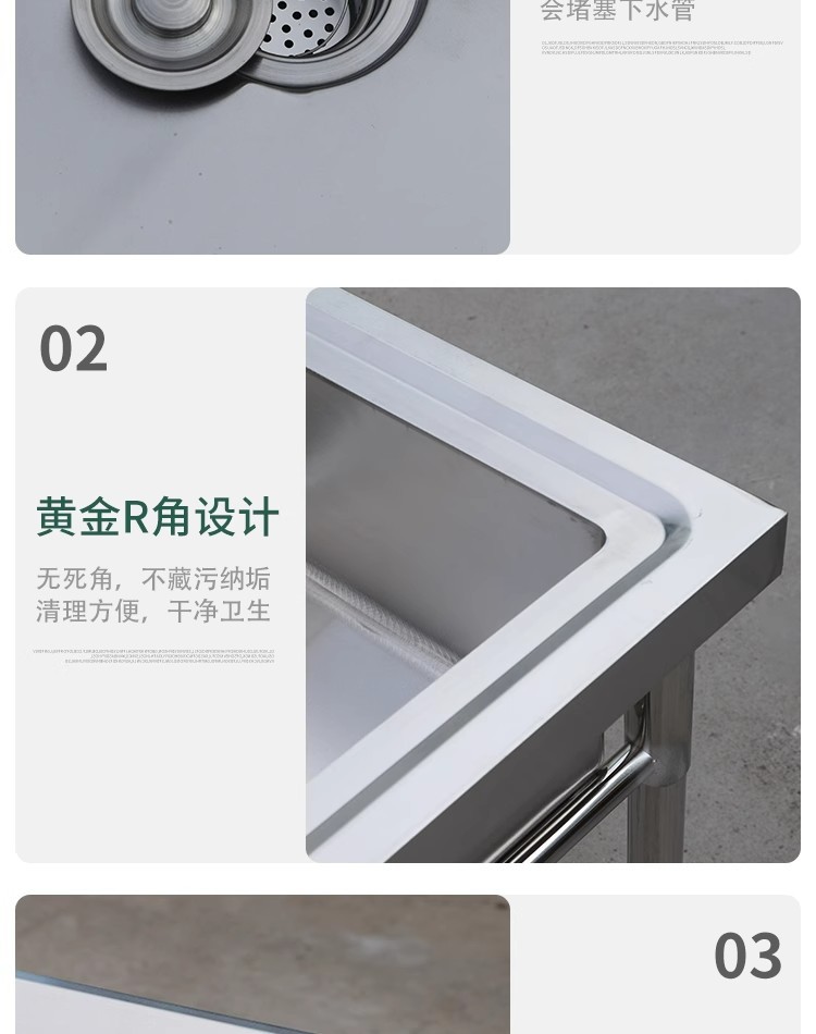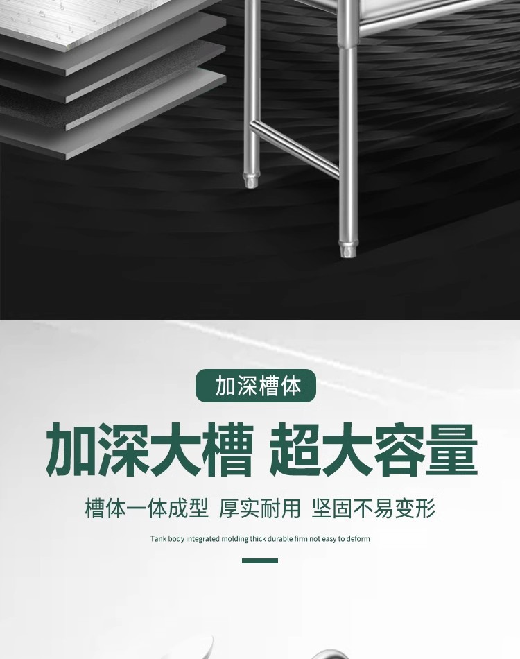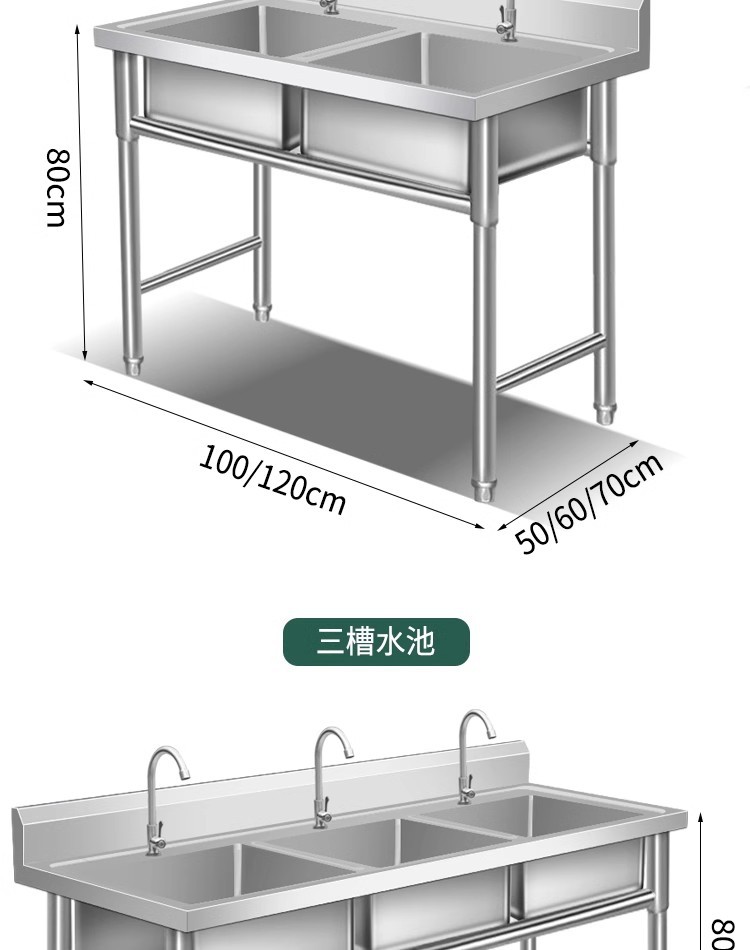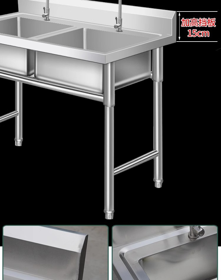 加厚不锈钢水池商用洗手盆厨房单/双/三槽洗菜池家用带支架洗碗池