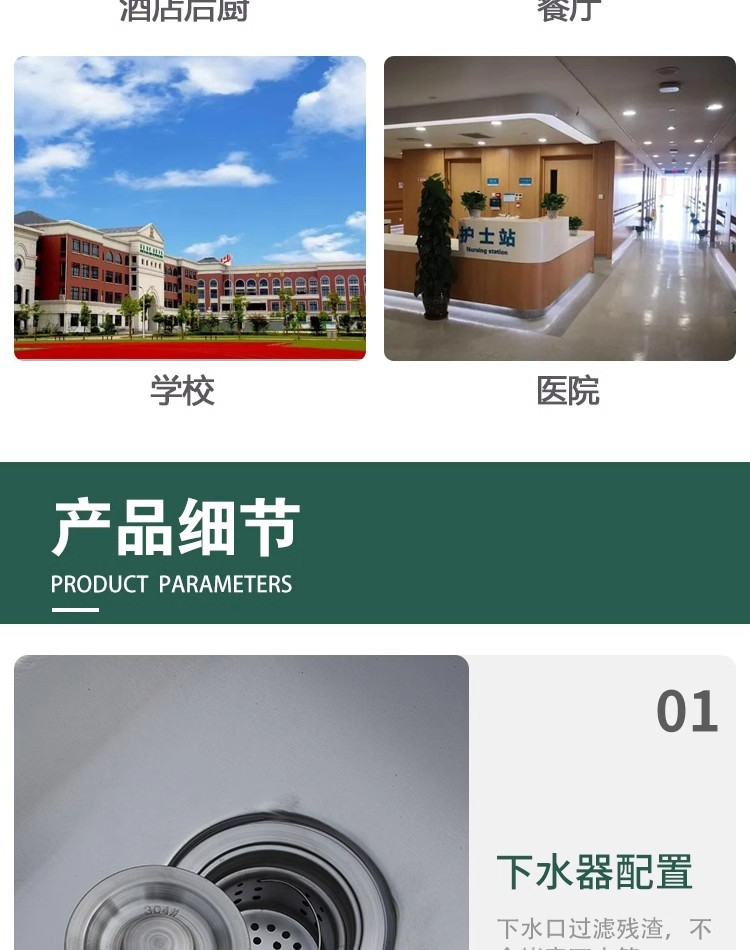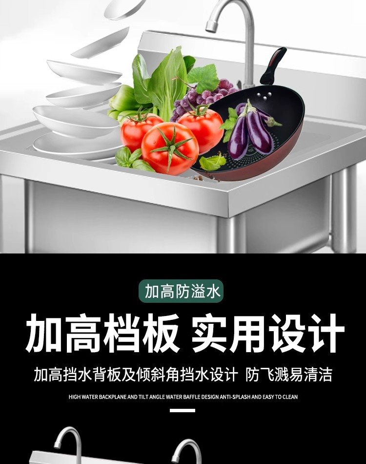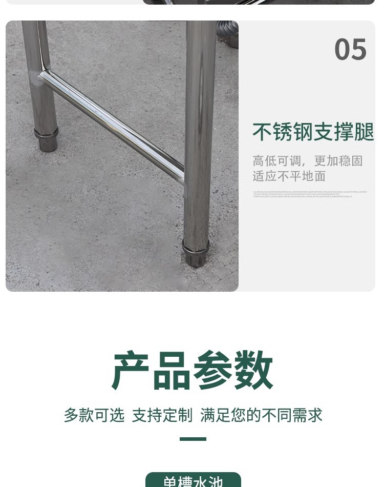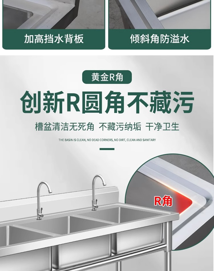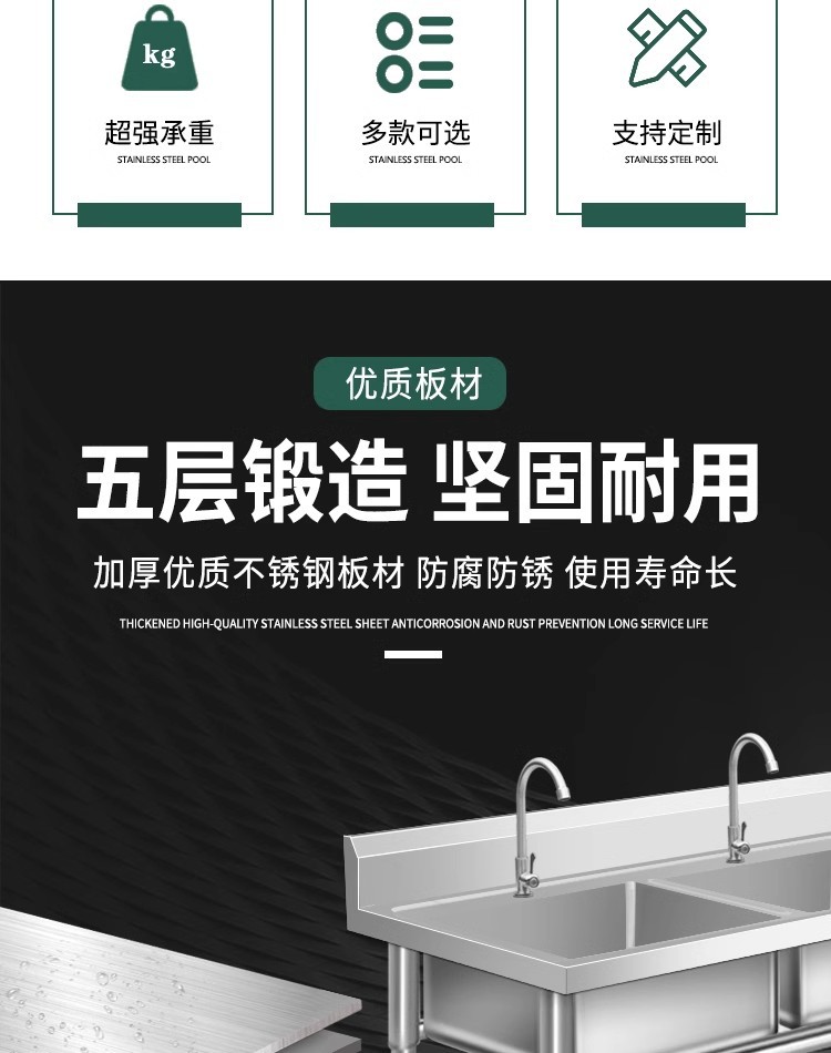 加厚不锈钢水池商用洗手盆厨房单/双/三槽洗菜池家用带支架洗碗池