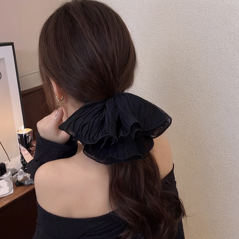 • 2 # 한국식 주름 특대 대장 머리끈-블랙