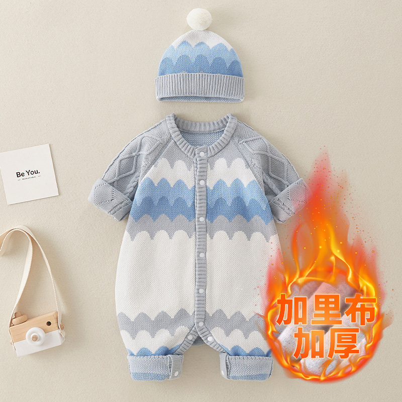 아기 옷 가을 의류 남성 아기 모자 긴 소매 니트 코튼 스레드 스웨터 등반 의류 가을과 겨울
