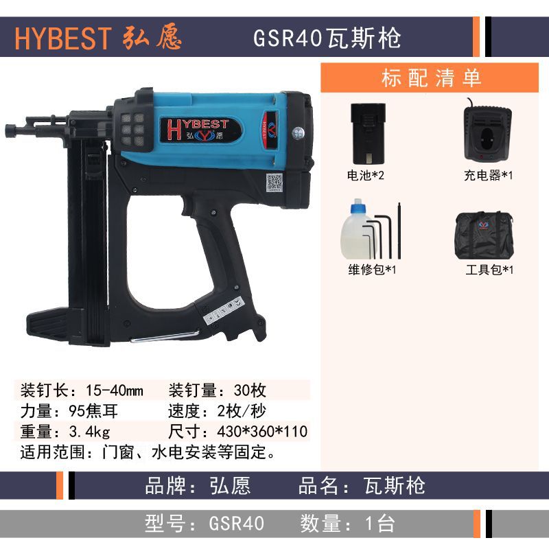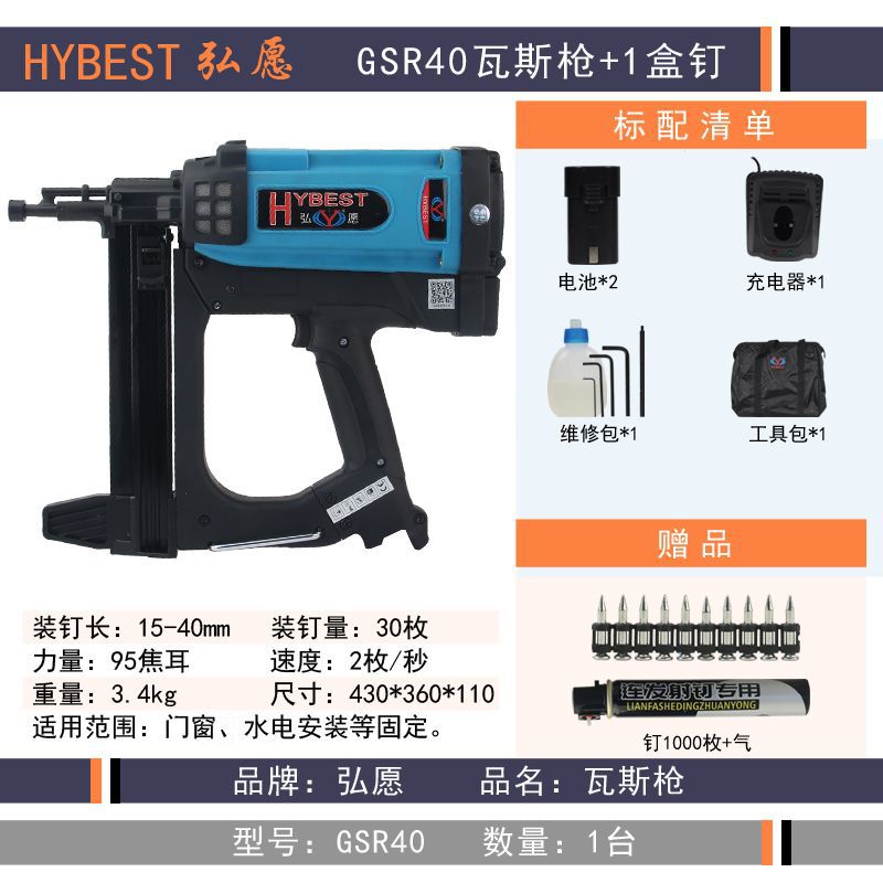 Hongyuan GSR40 가스 스틸 네일 건 물 전기 가스 네일 건 콘크리트 특수 네일 건 리튬 스틸 네일 건