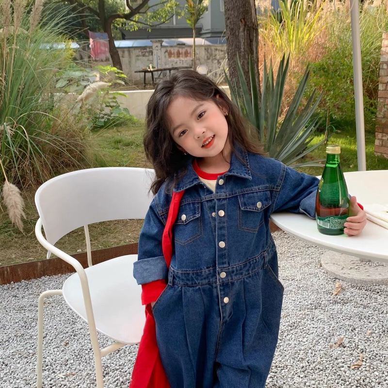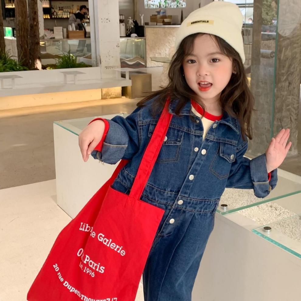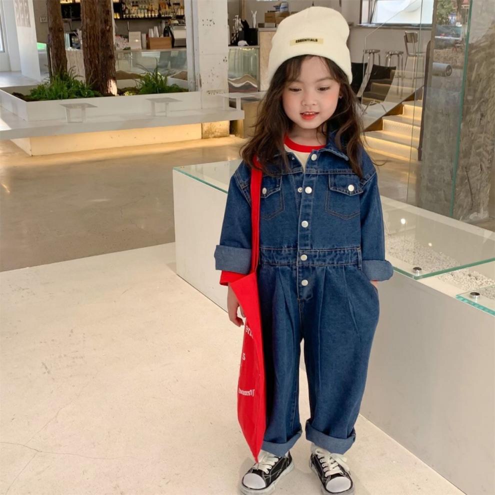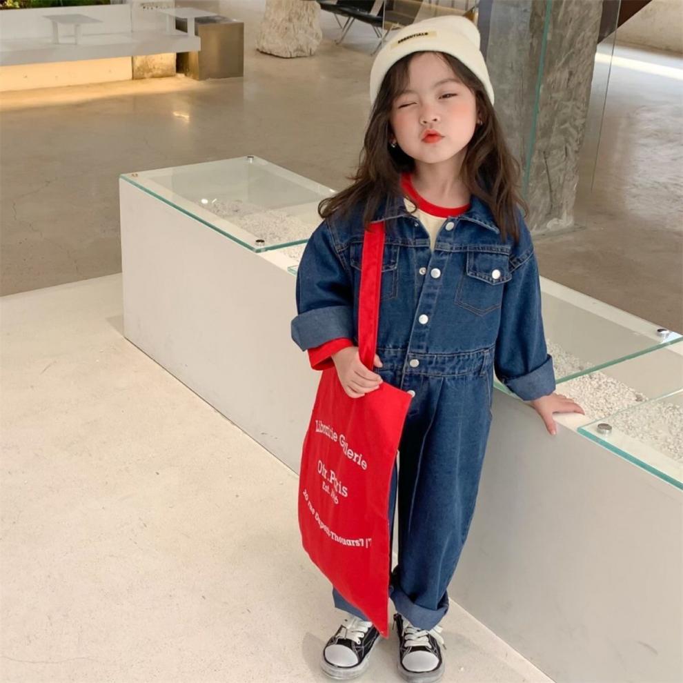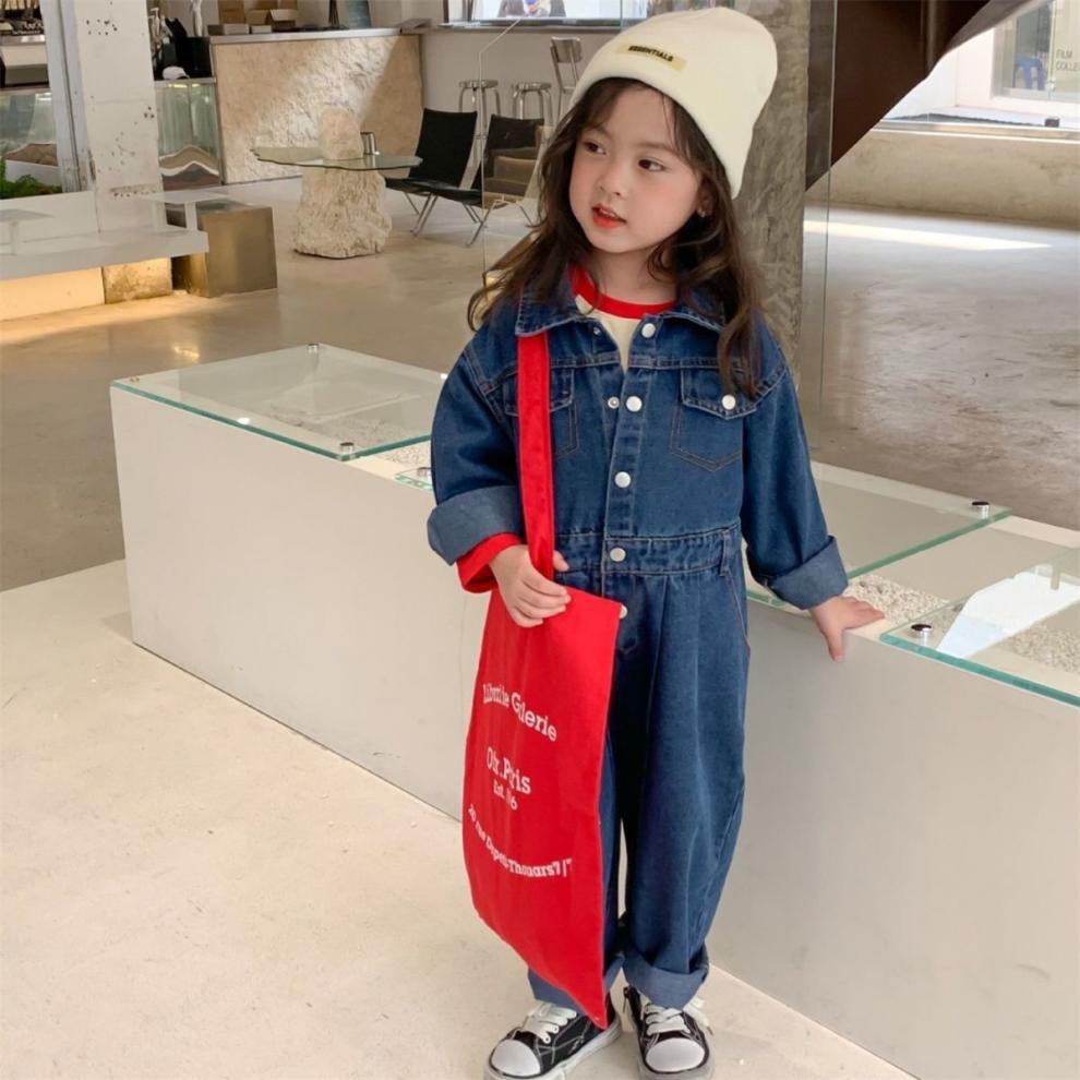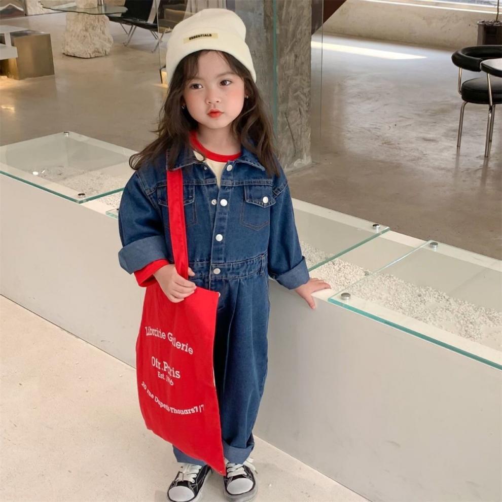 소년 소녀 일본식 캐주얼 점프 수트 봄 어린이 긴팔 데님 점프 수트 아기의 허리 폐쇄 점프 수트 트렌디스토어 가기