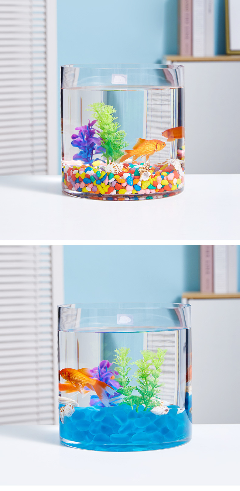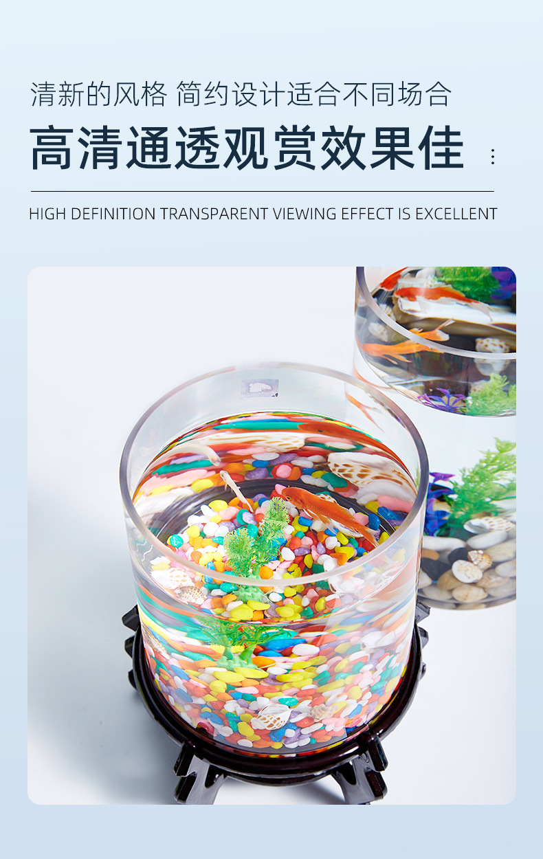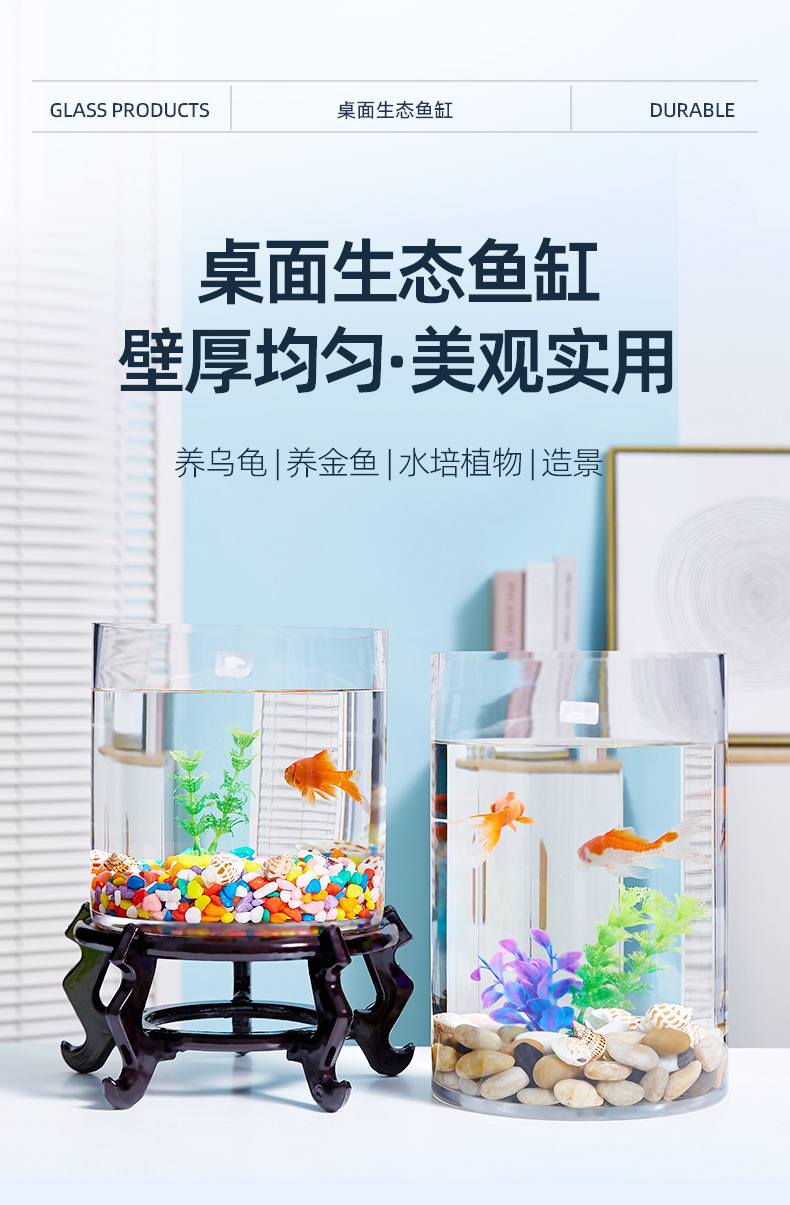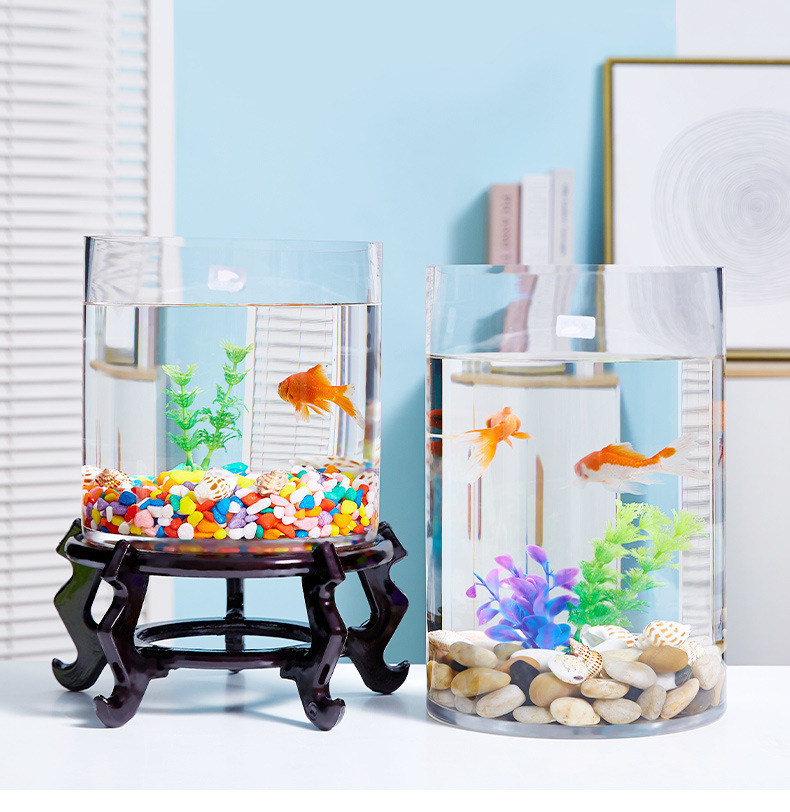 금붕어 탱크 유리 수족관 작은 창조적 인 둥근 원통형 대형 거북이 풍경 유리 원통형 물고기 탱크