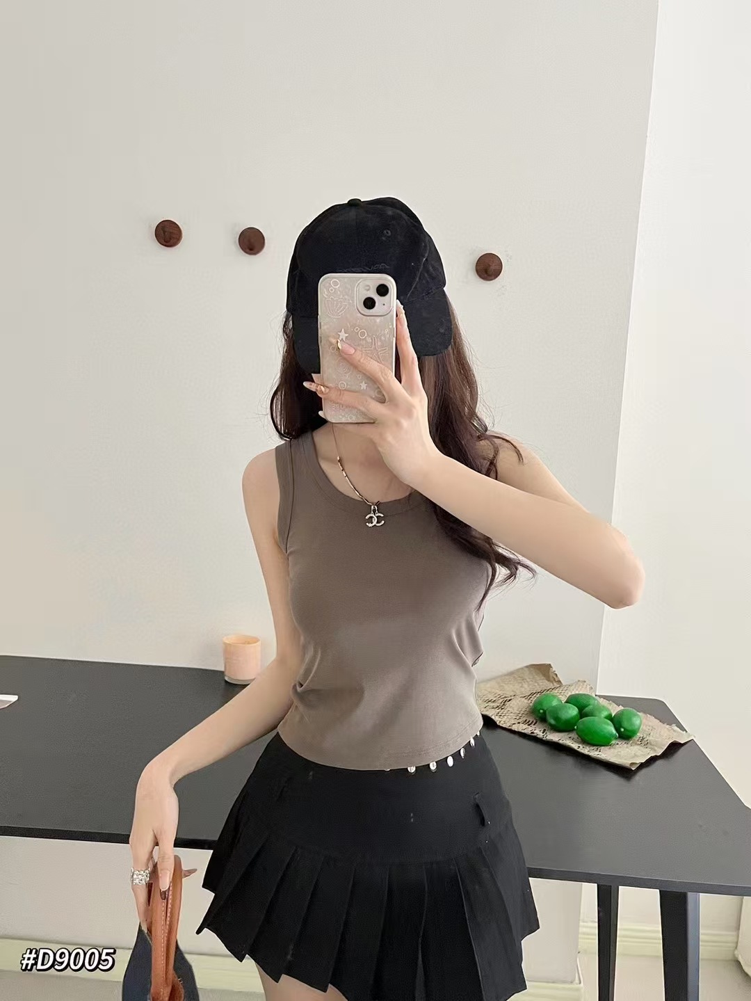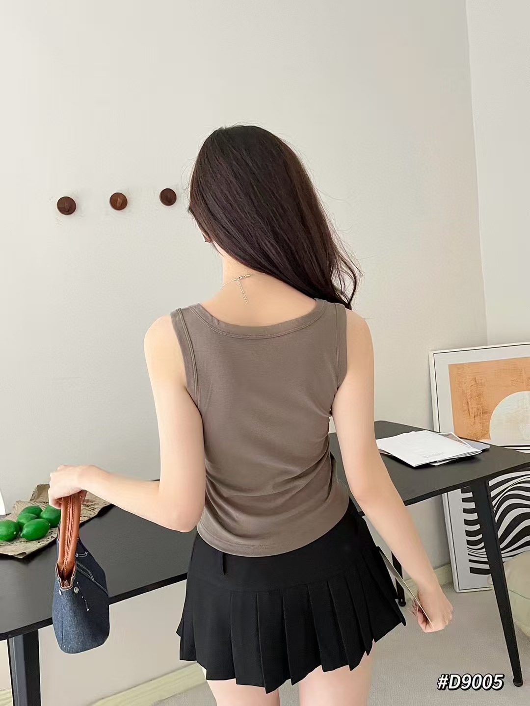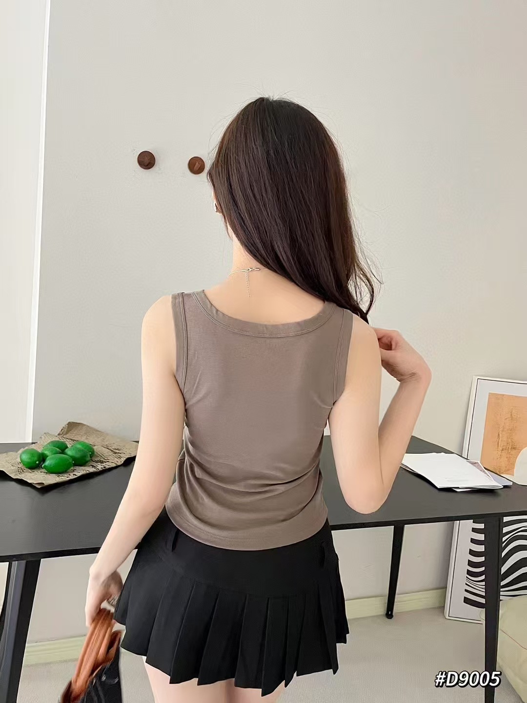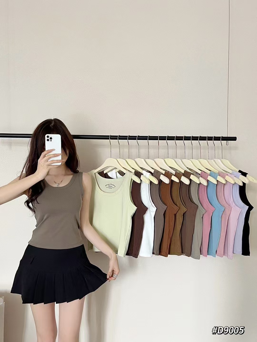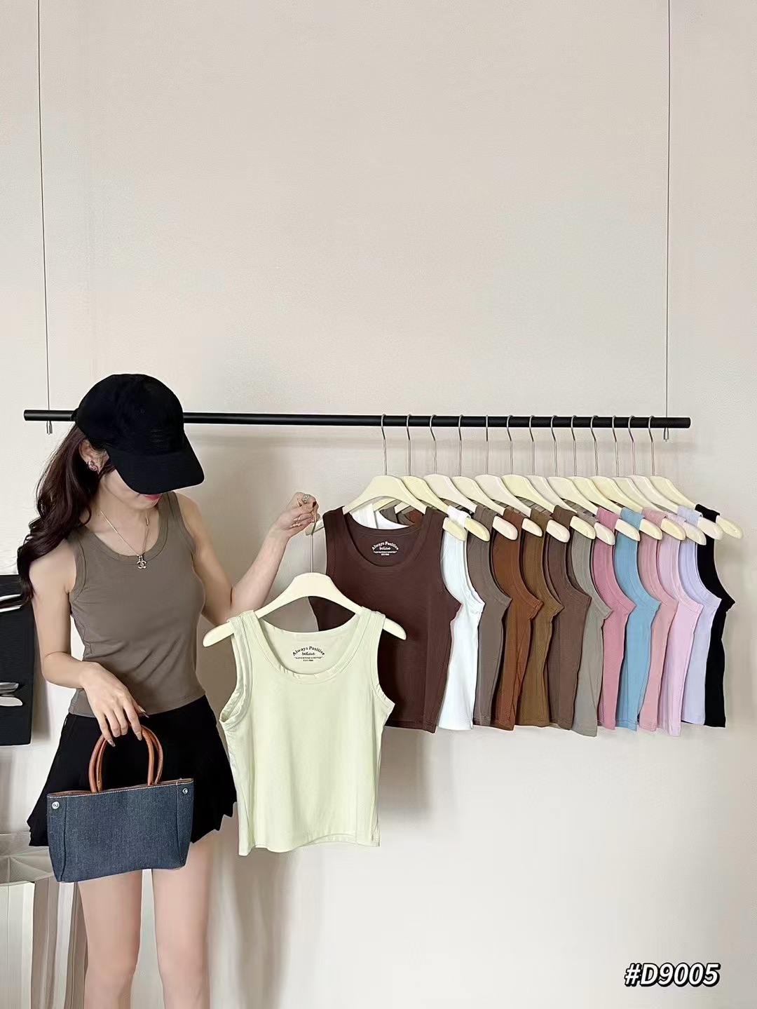 Clove Na 9005 조끼 단색 얇은 조끼 넓은 어깨 순수한 색 면 둥근 목 슬링 여성의 48cm 얇은 티셔츠 아름다운 뒤스토어 가기