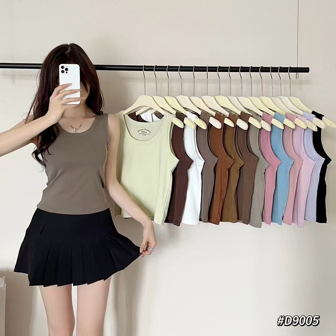 Clove Na 9005 조끼 단색 얇은 조끼 넓은 어깨 순수한 색 면 둥근 목 슬링 여성의 48cm 얇은 티셔츠 아름다운 뒤