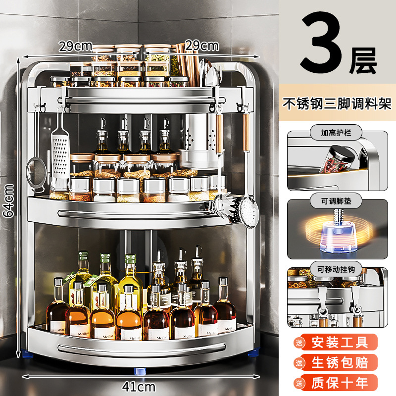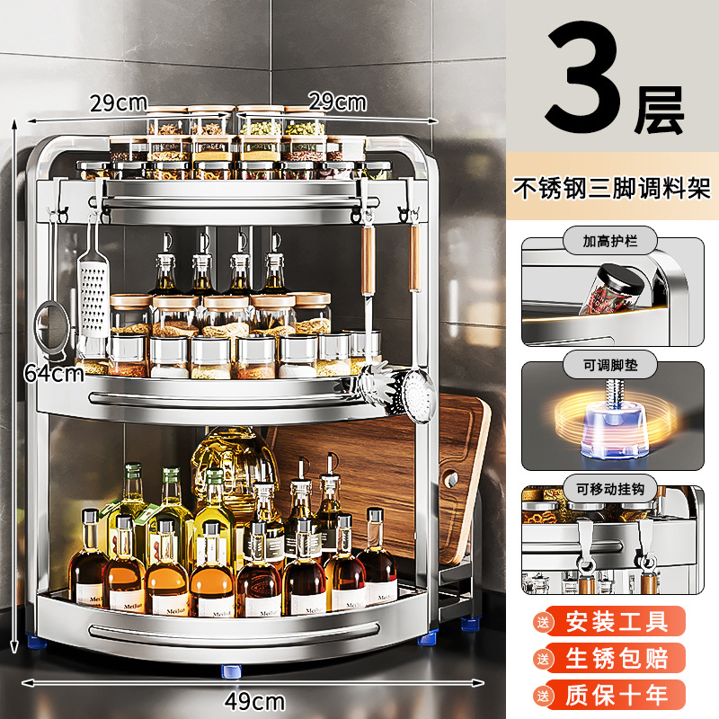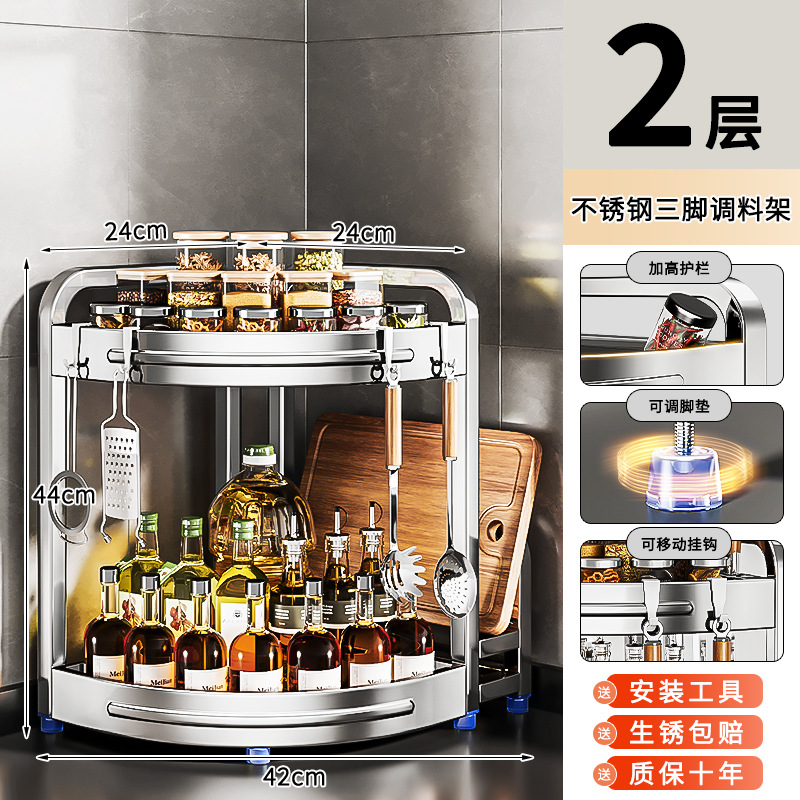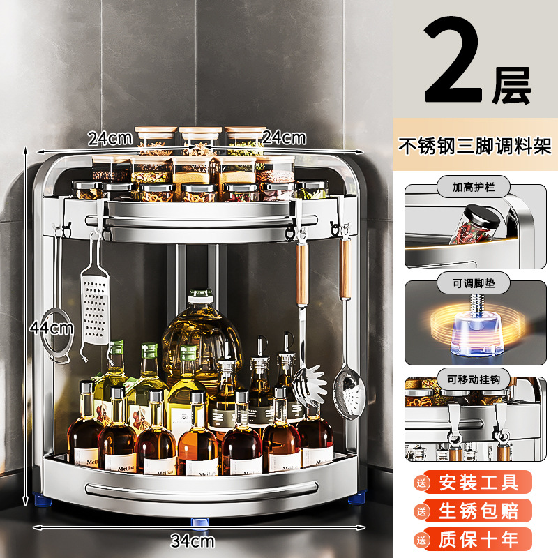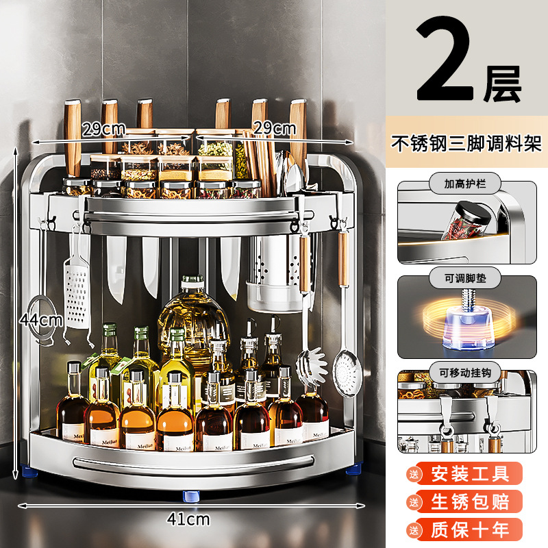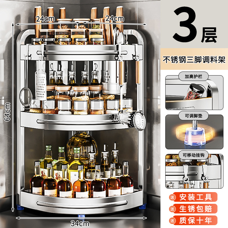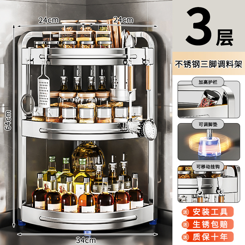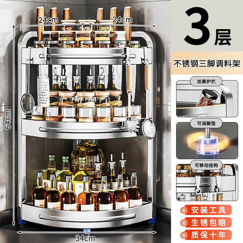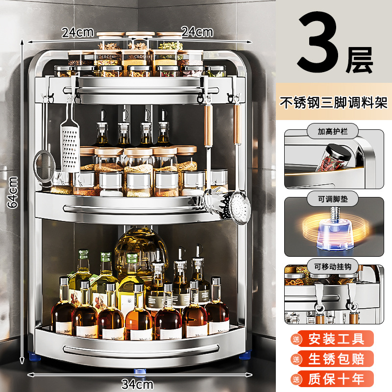 새로운 스테인리스 스틸 주방 조미료 보관대, 조리대 삼각 코너 다기능 벽 코너 수납 선반스토어 가기