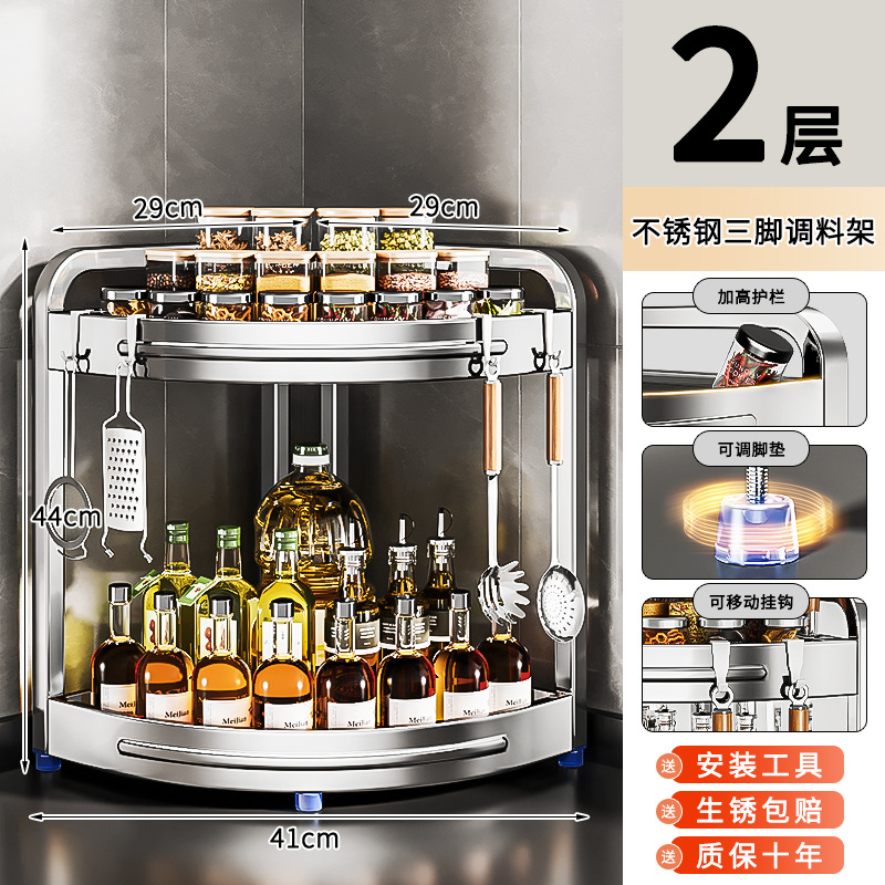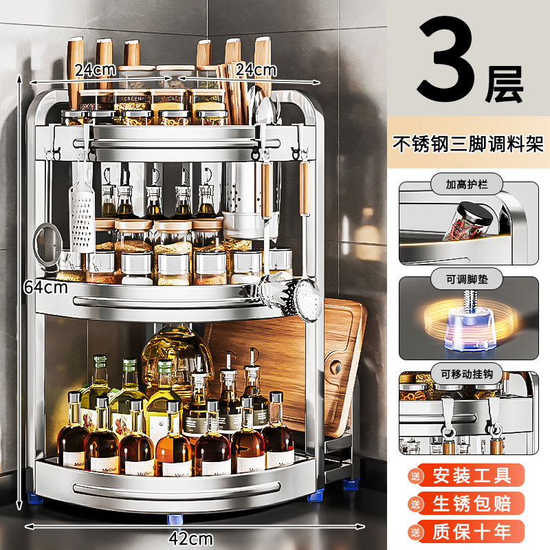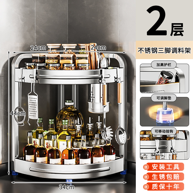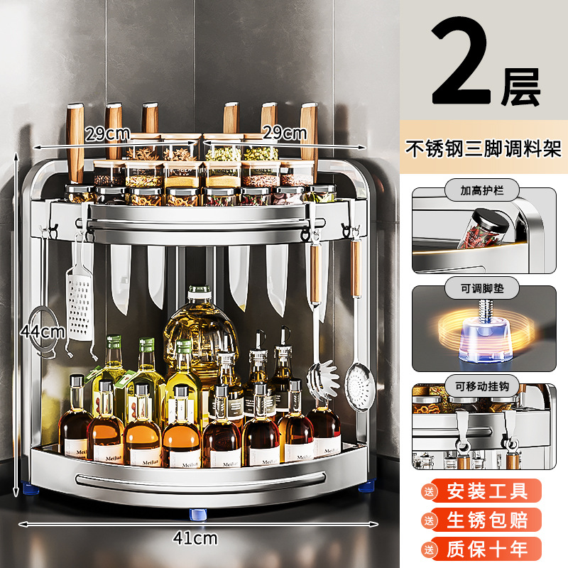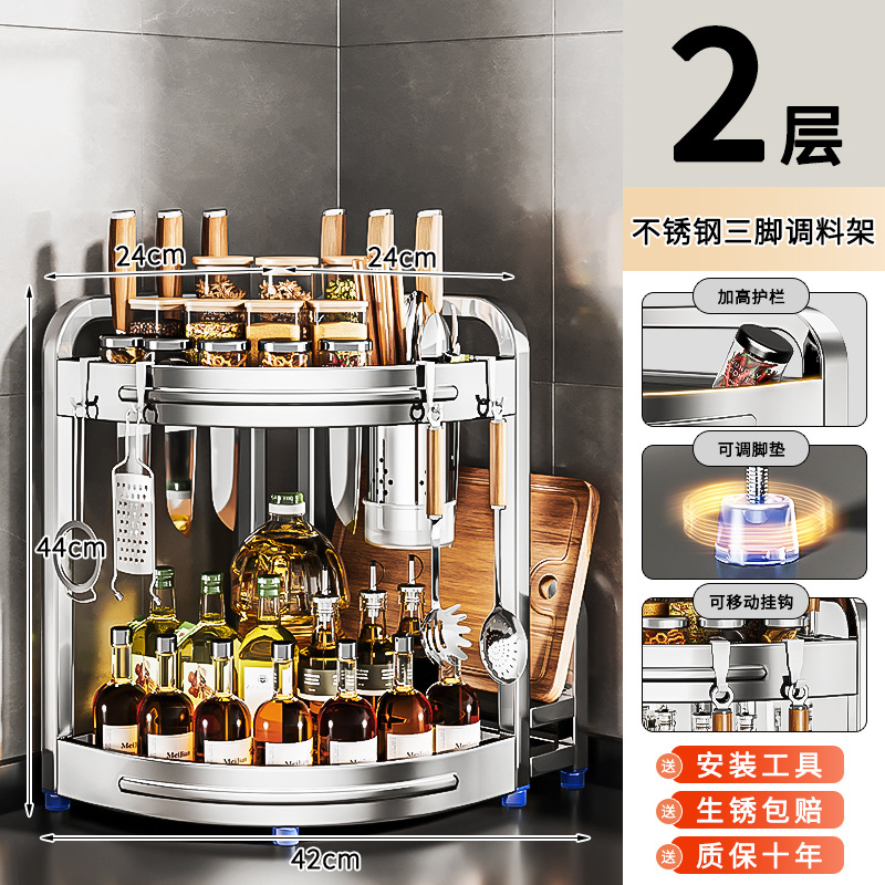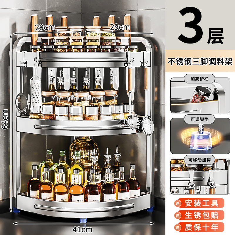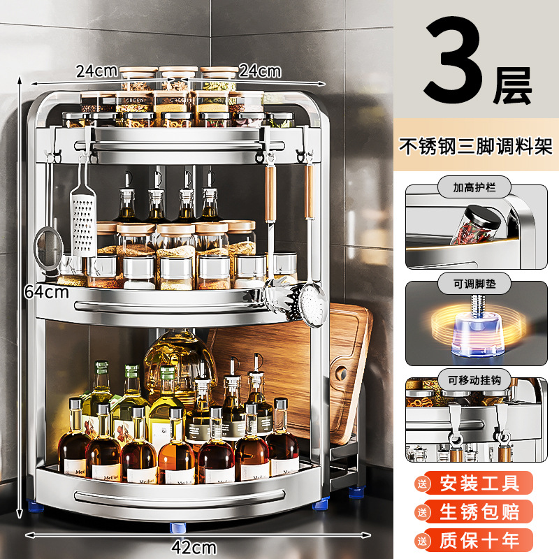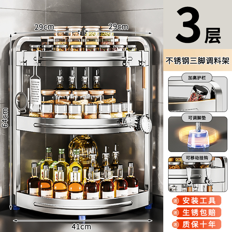 새로운 스테인리스 스틸 주방 조미료 보관대, 조리대 삼각 코너 다기능 벽 코너 수납 선반스토어 가기
